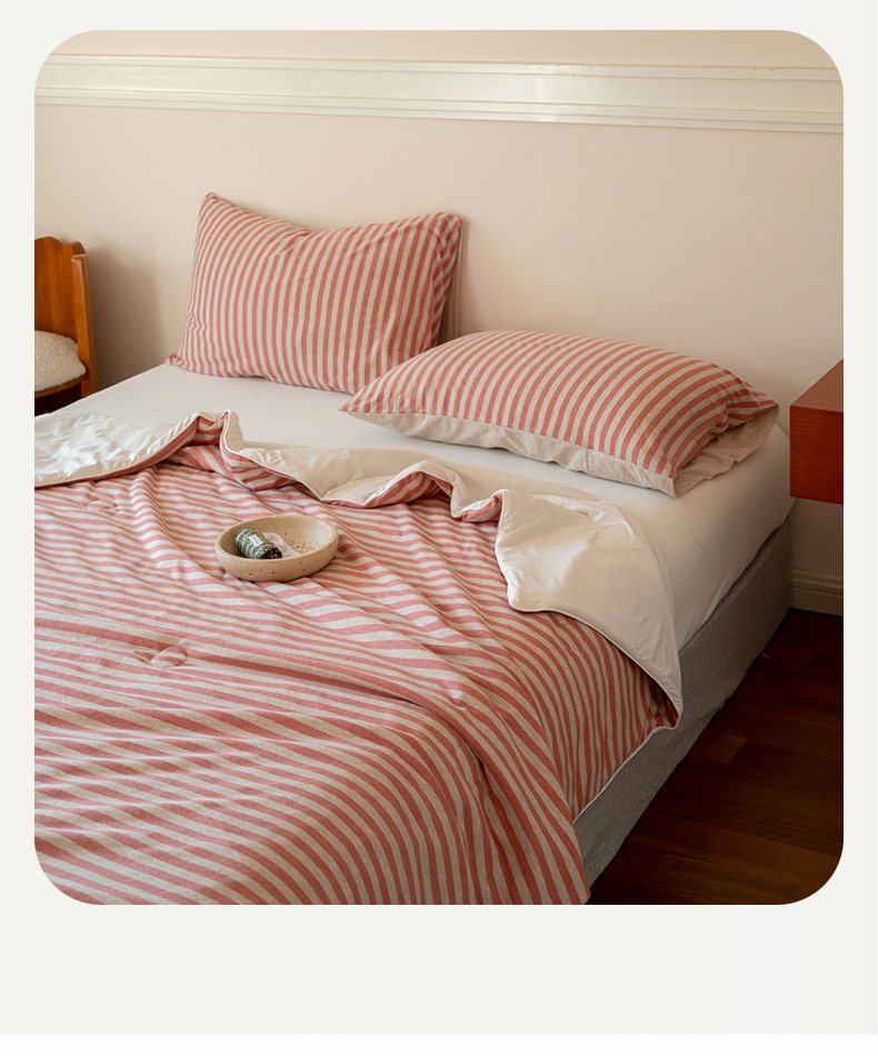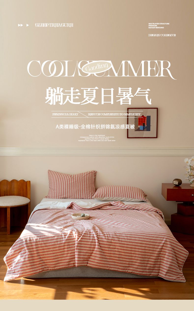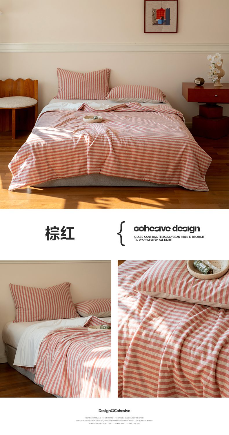 华超针织 2025新款全棉针织拼锦氨凉感夏被 纯棉拼凉感 棕红