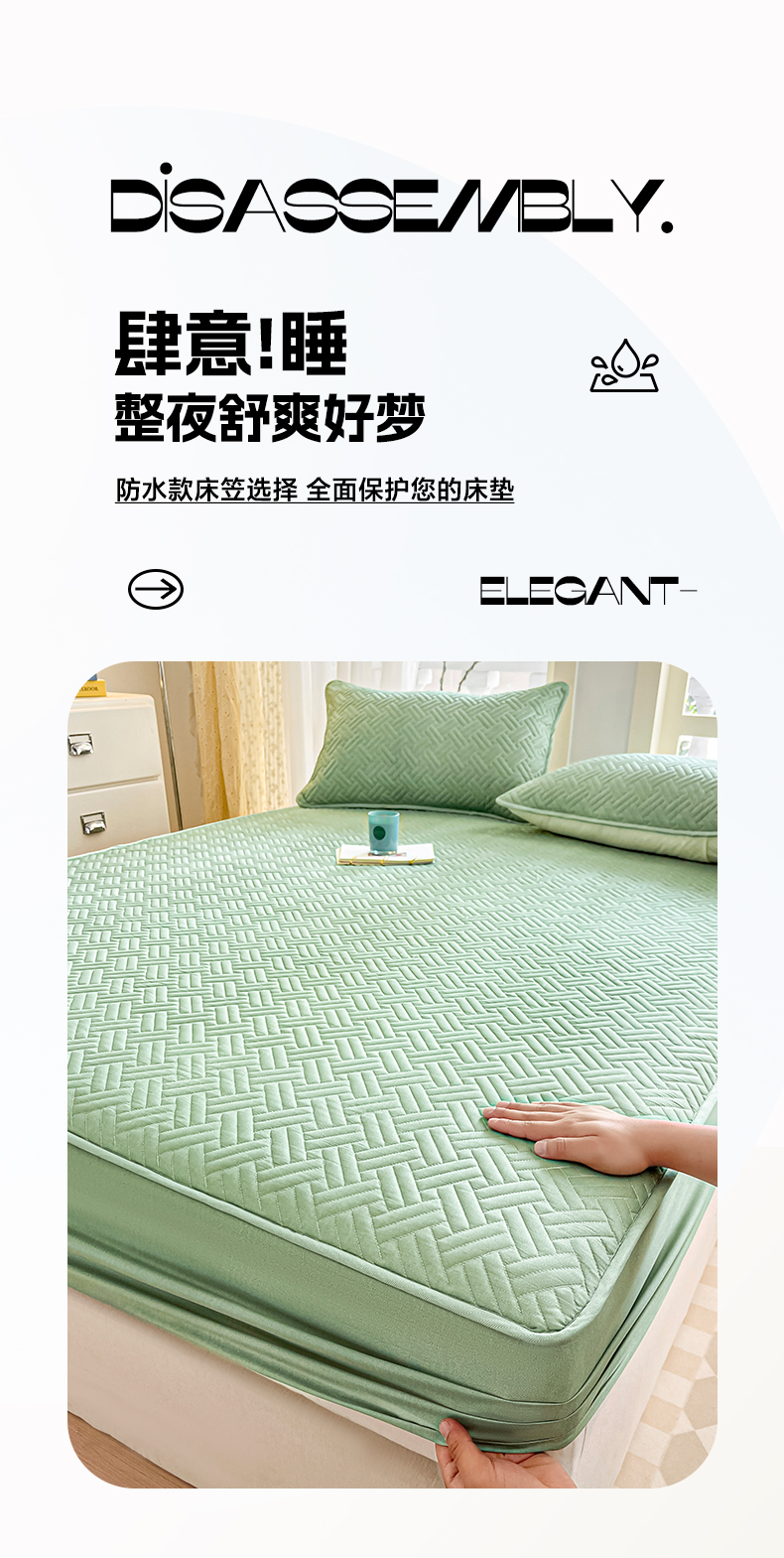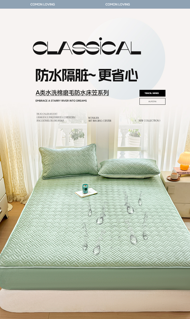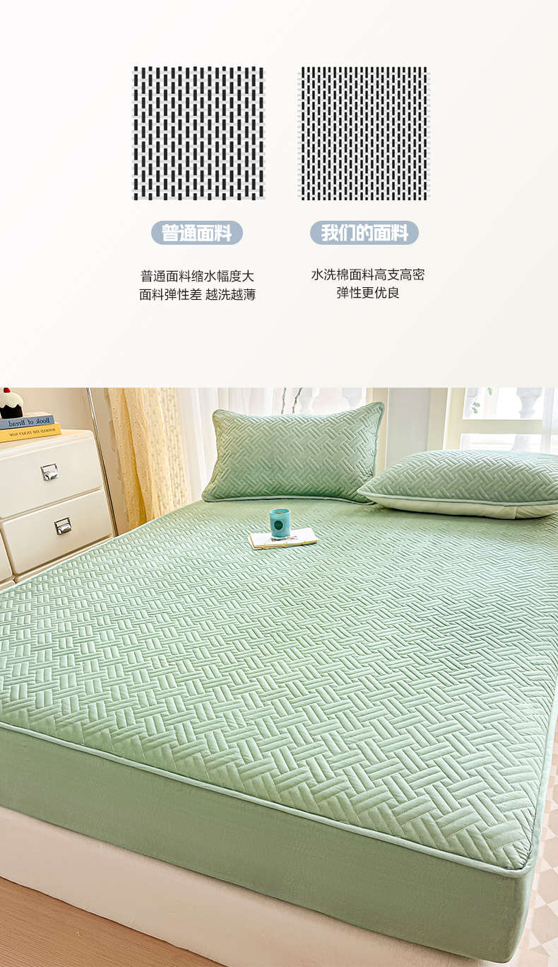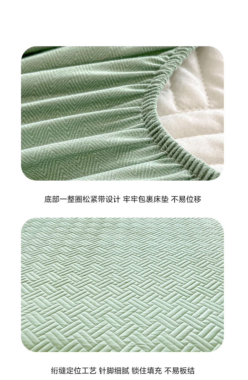 • 91家纺网 家纺一手货源 找家纺 卡伦家纺 2025新款水洗棉磨毛防水夹棉床笠 斜纹-青石绿