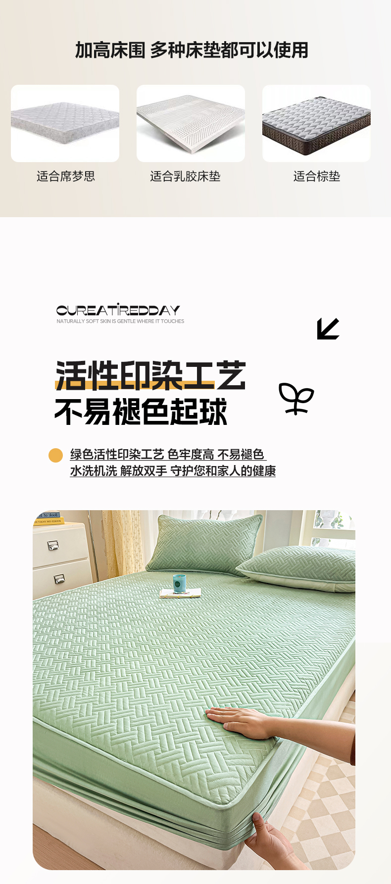 当前位置: 91家纺网 > 商品网购 > 床上用品 > 床笠 > 卡伦家纺 2025新款水洗棉磨毛防水夹棉床笠 斜纹-青石绿