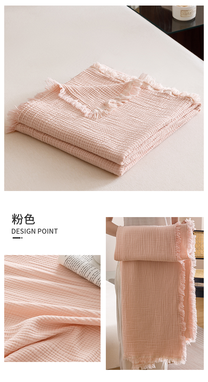 商品名称:瑞米家居 2025新款A类皱皱纱流苏毯盖毯毯子 粉色