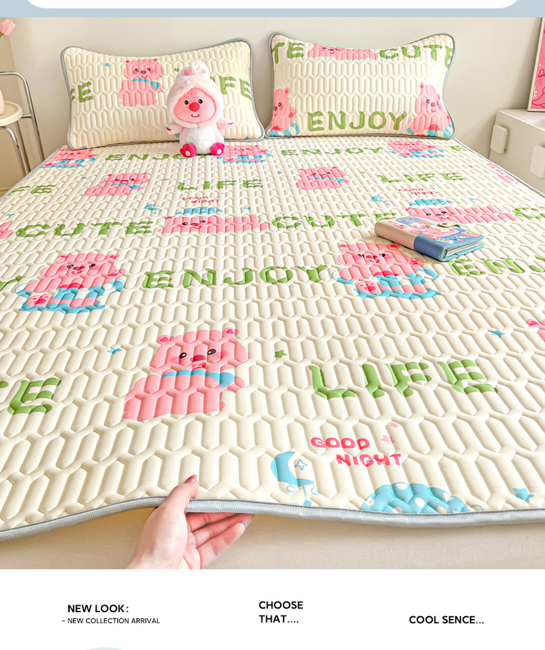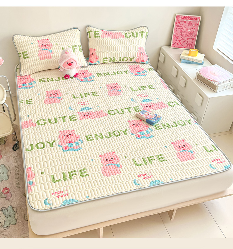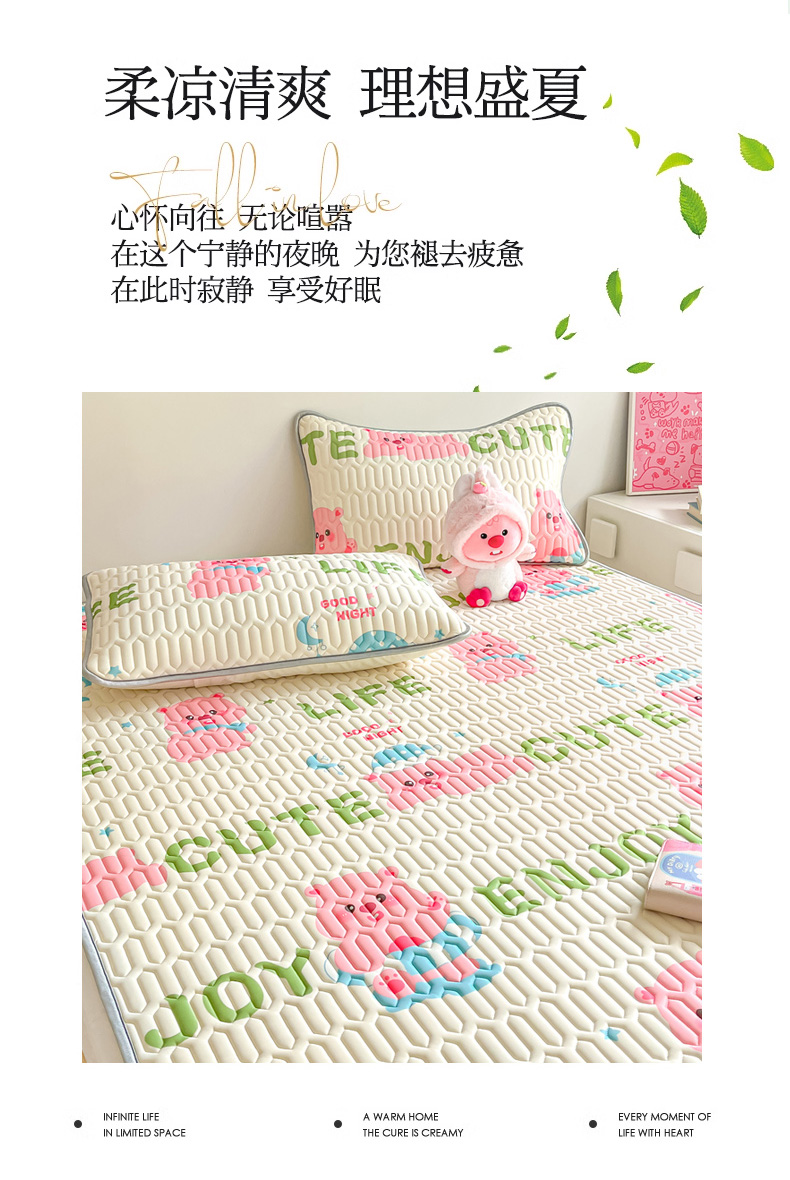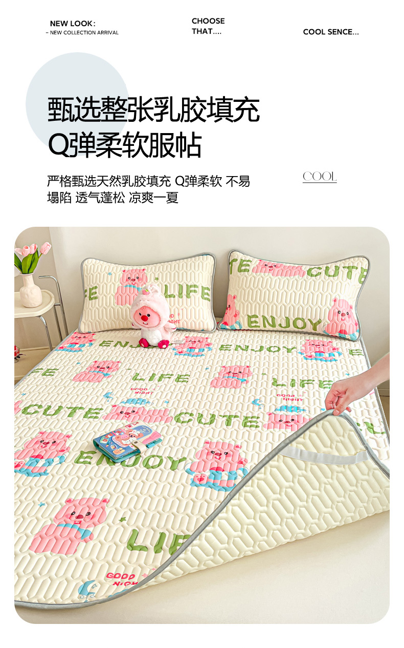 沐慕 2025新款高克重小清新乳胶凉席-风格二 花环兔兔