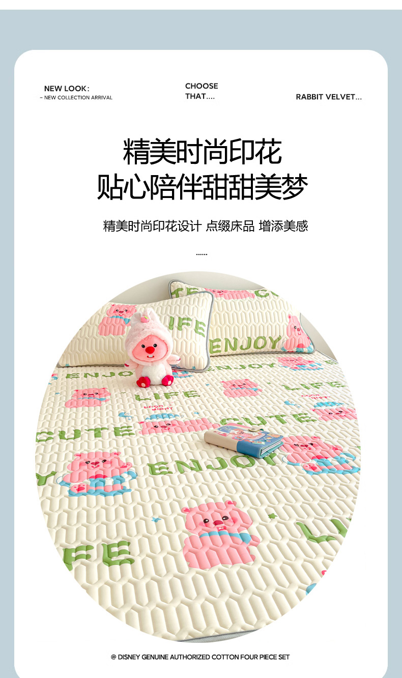 (总)沐慕 2025新款A类200g加厚雪花绒180g牛奶绒四件套,黄油小熊,爱心小熊,豹纹猫咪,彩虹,草莓兔,蛋糕兔,蛋糕小兔,粉嫩郁金香,花花粉兔,可爱熊,小橘子,星星月亮,熊猫伙伴,雪纳瑞,字母萌宠