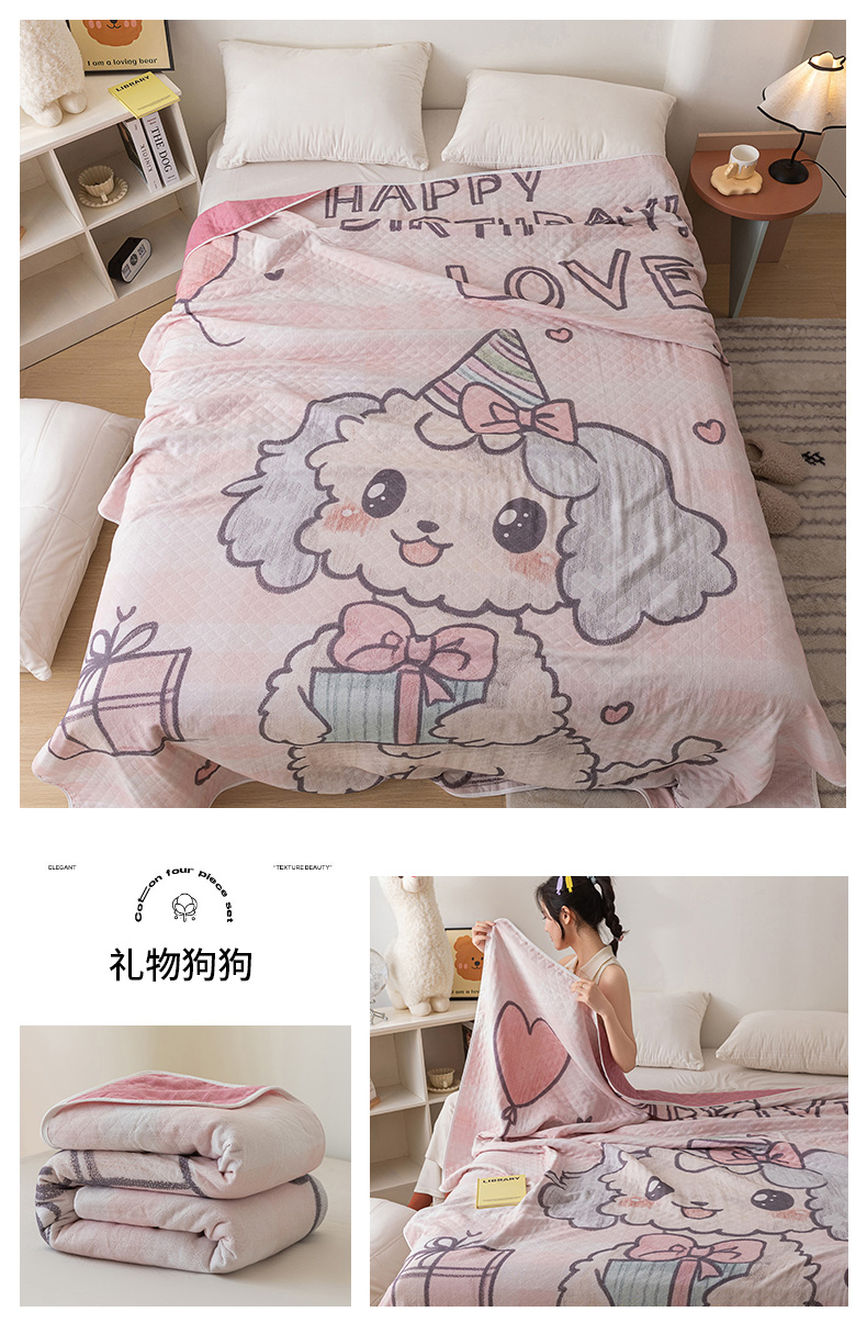 商品名称:乐家毛巾被 2025春夏新款全棉纯棉六层大版印花毛巾被 礼物狗狗