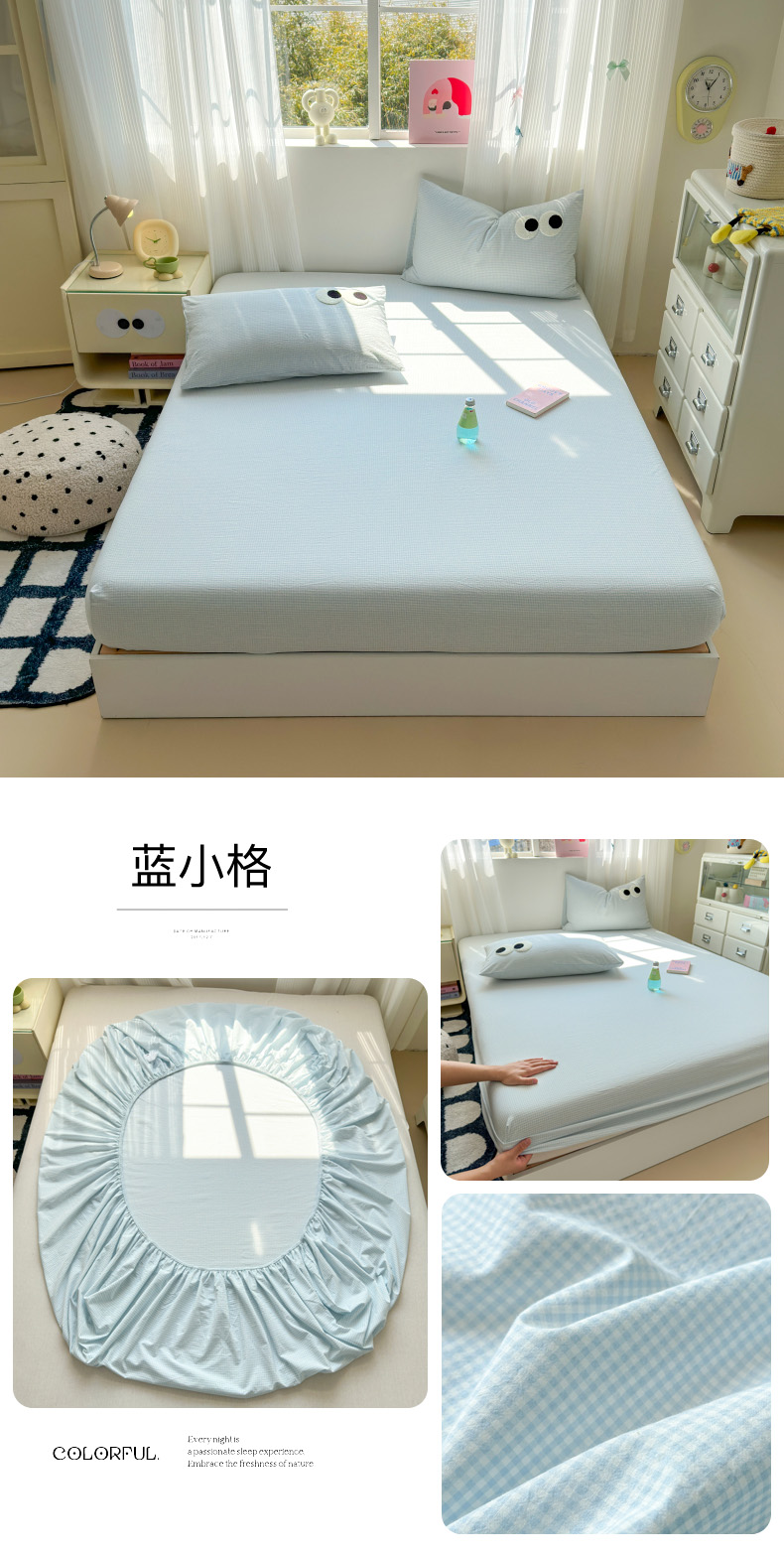 丽涵家纺 全棉色织水洗棉单品床笠-床笠三件套 蓝小格