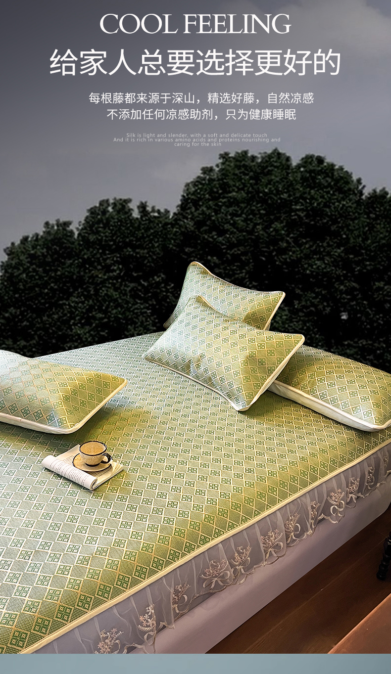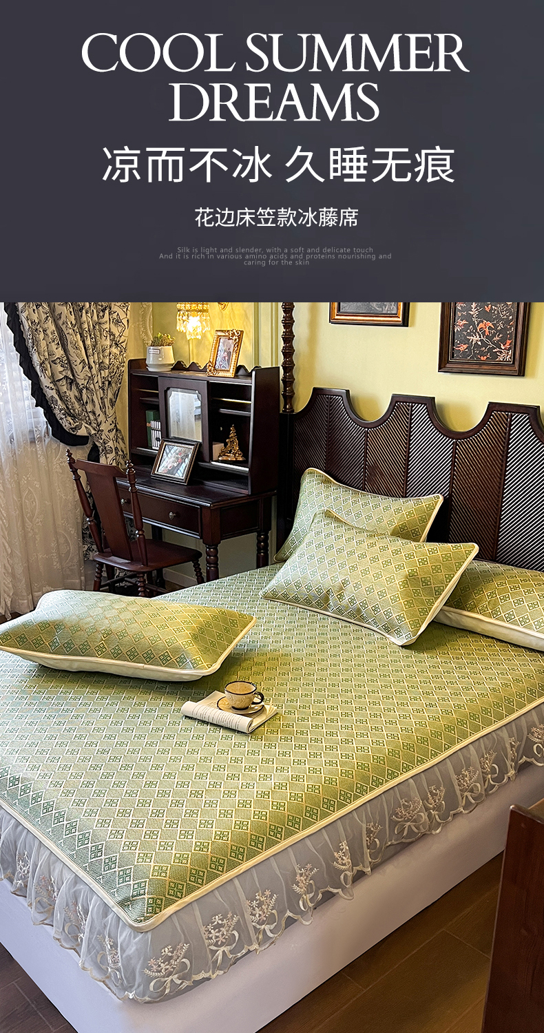商品名称:网红馆 2025新款花边冰藤席凉席-夏之语床笠款 葱绿