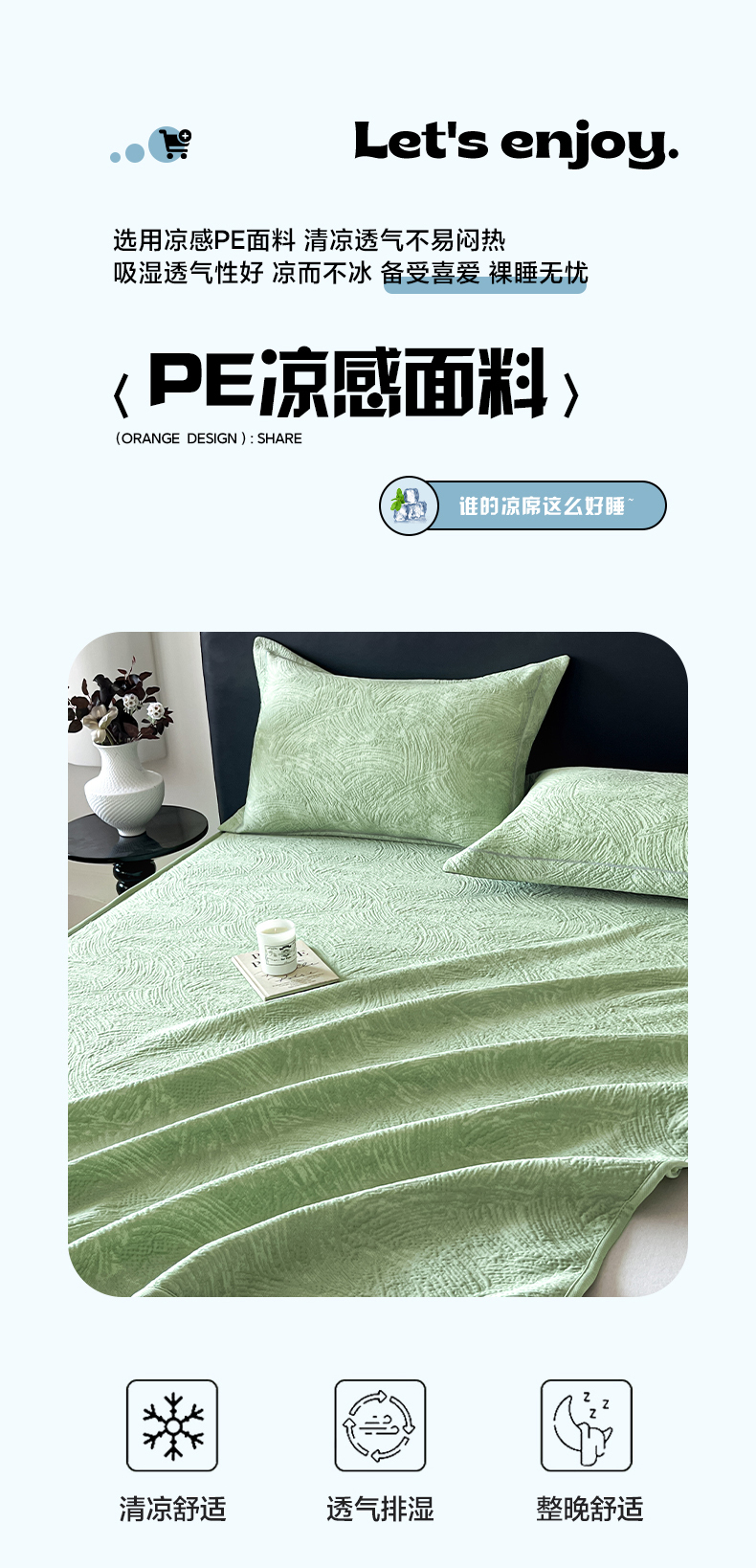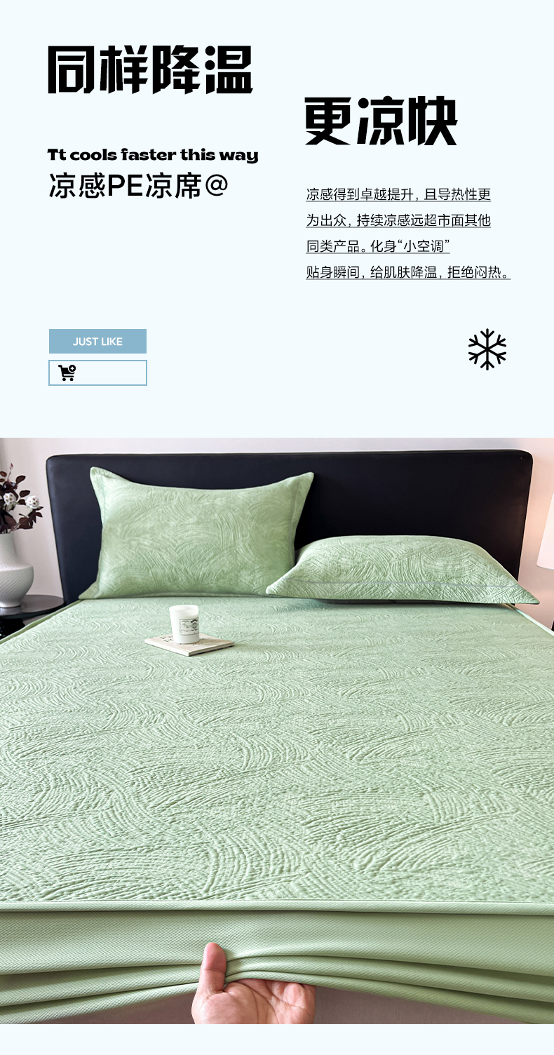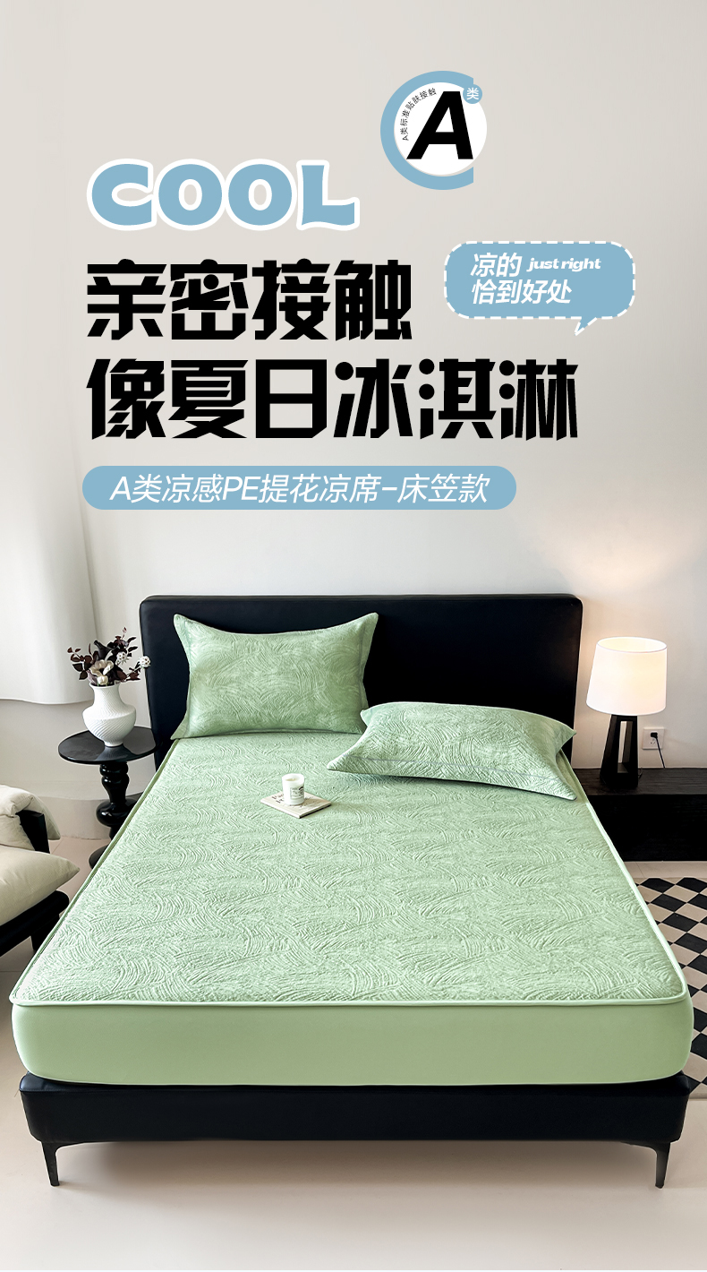 蓝邻家纺 2025新款PE提花床笠凉席-涂鸦系列 涂鸦-绿
