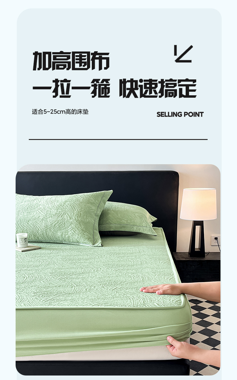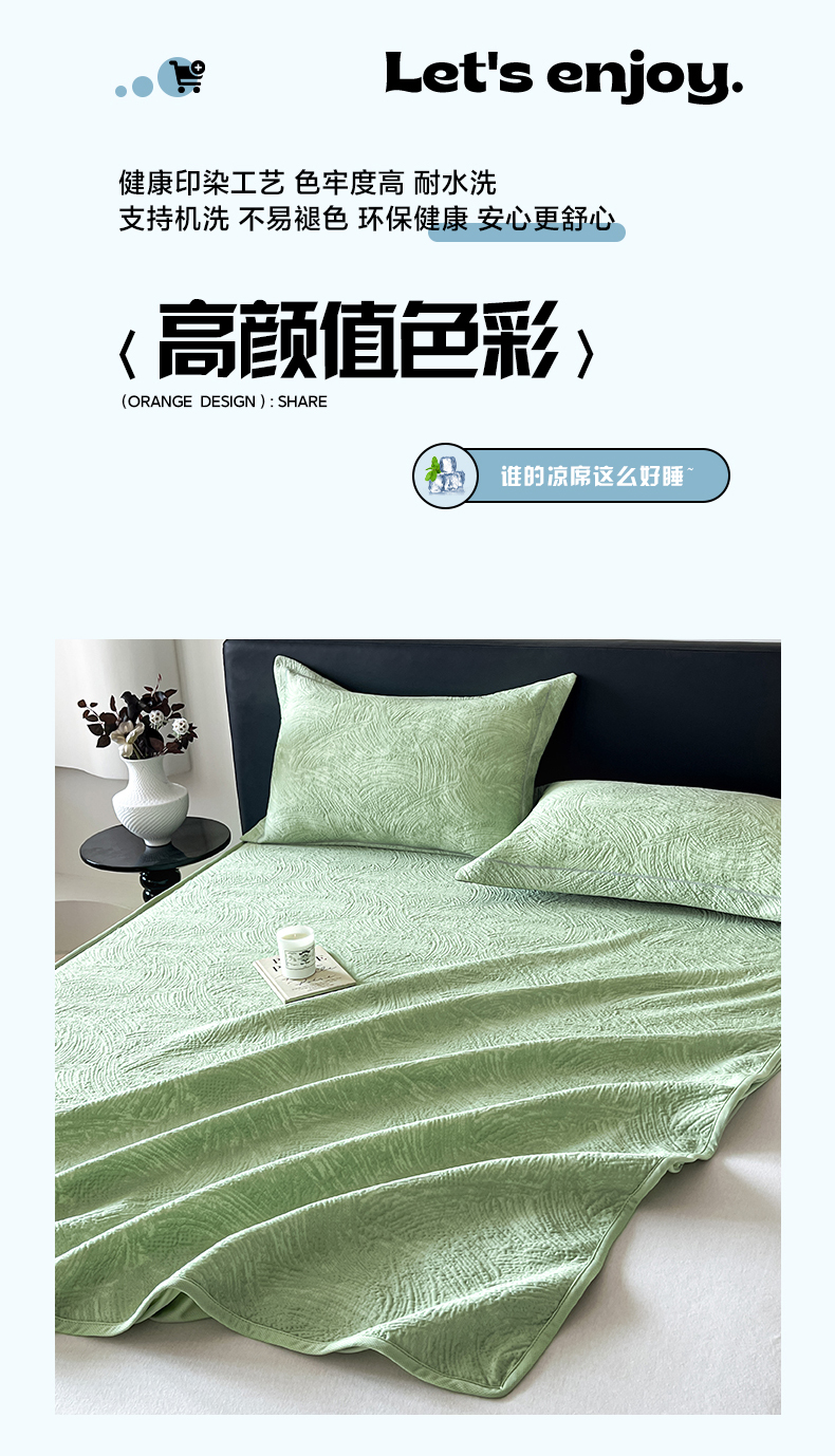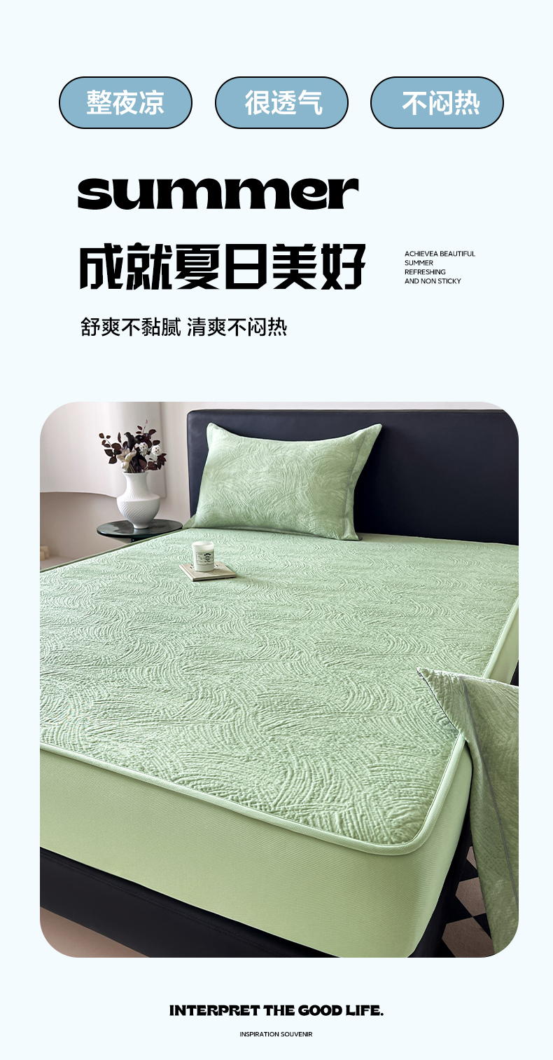 蓝邻家纺 2025新款PE提花床笠凉席-涂鸦系列 涂鸦-绿