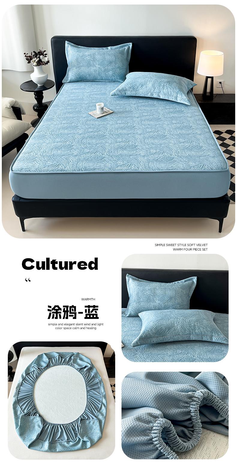 (总)蓝邻家纺 2025新款全棉纯棉磨毛简约系列四件套,白桃麻薯,冰海蓝,豆沙,蓝莓,奶油黄,浅灰,青绿,清新绿,水蓝,水云蓝,桃花粉