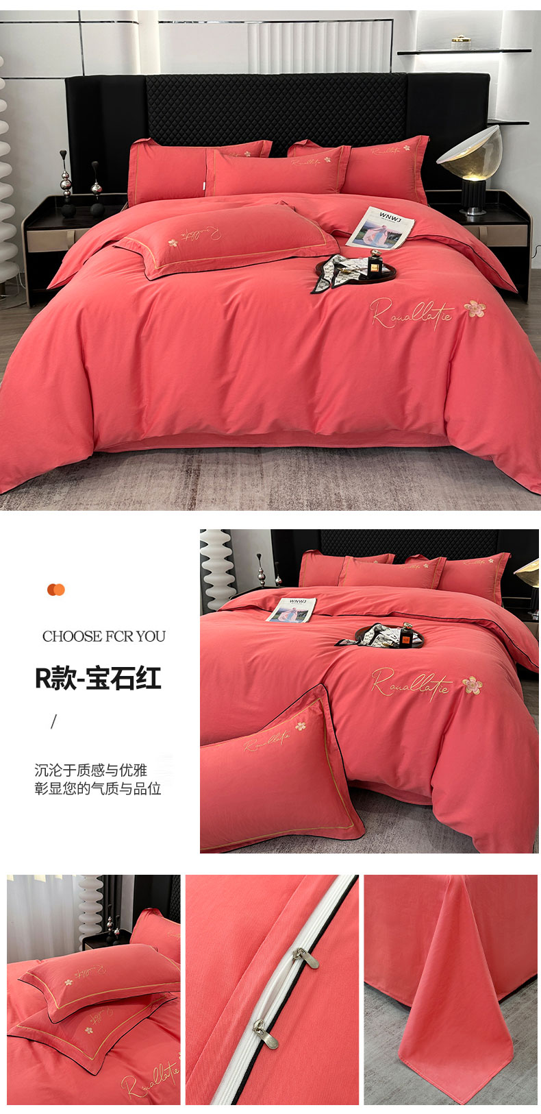 当前位置: 91家纺网 > 商品网购 > 床品套件 > 四件套 > 全棉普通四件套 > 宇彬家纺 2025新款13374全棉母婴级压线一字绣宽边枕套纯色刺绣四件套贡缎新疆长绒字母款-R款 R款-宝石红