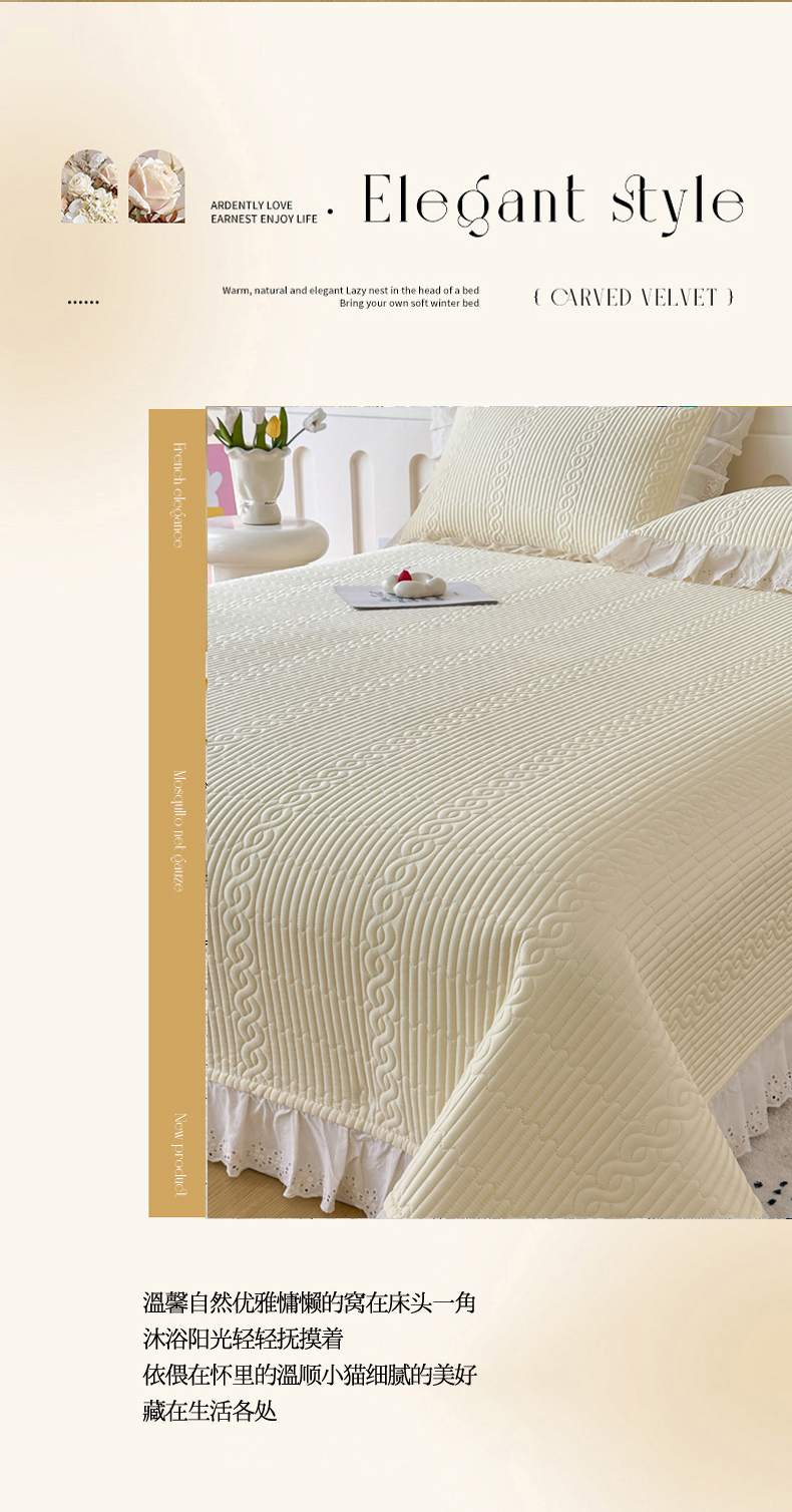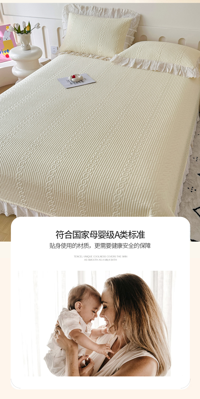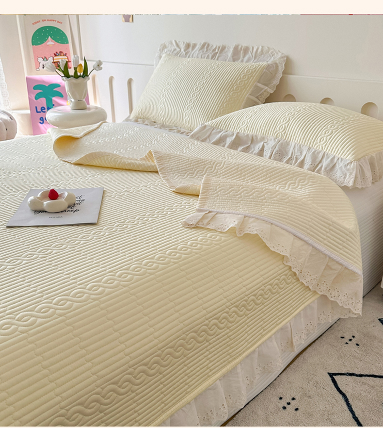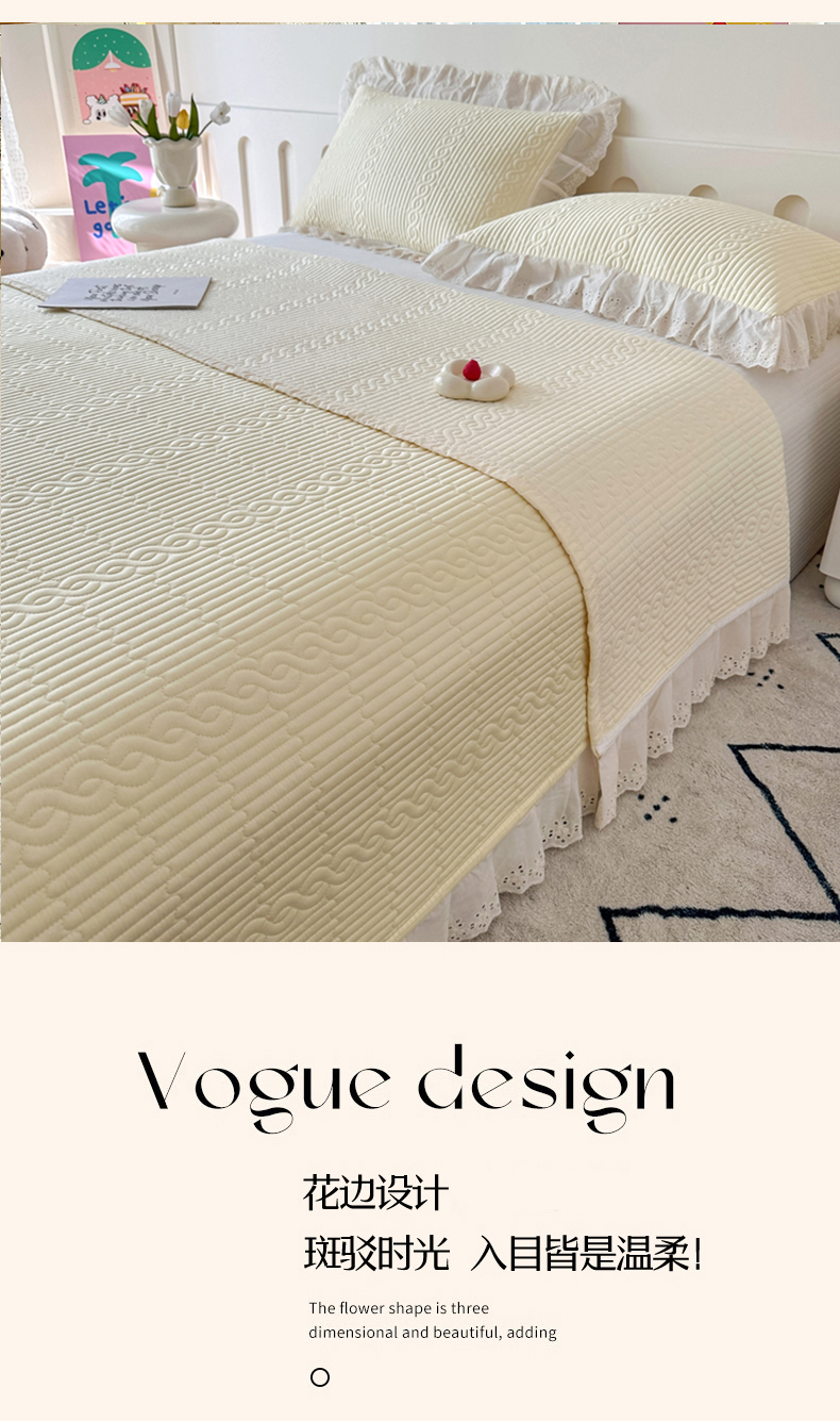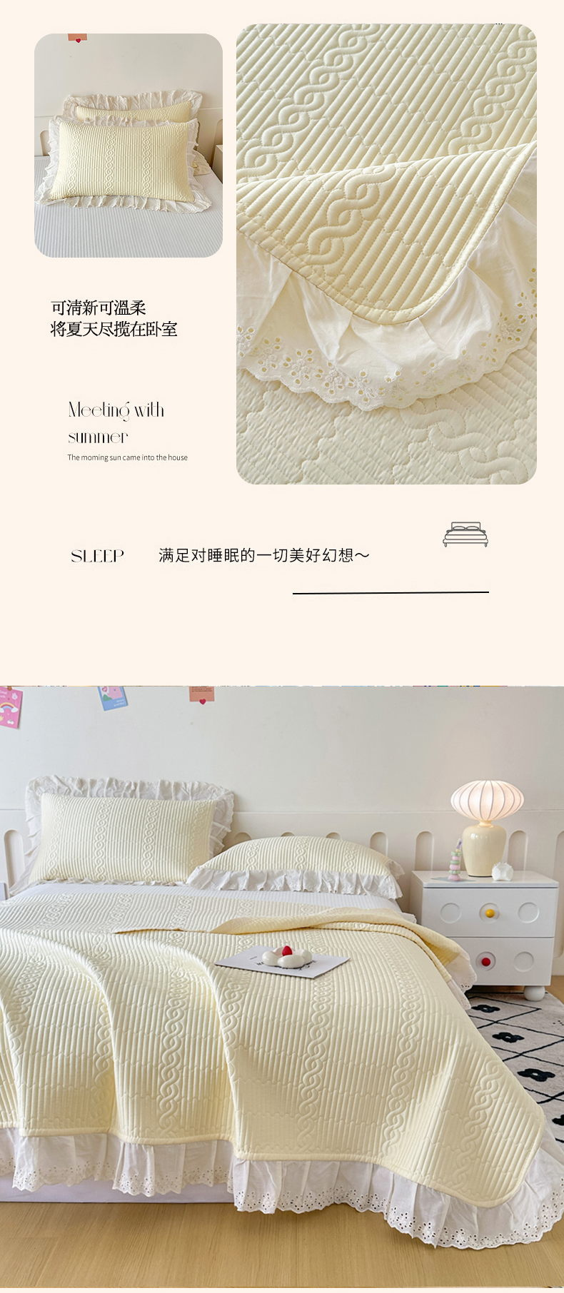 • 91家纺网 家纺一手货源 找家纺 (总)岚吉 2025新款莫代尔纯色小花边床盖三件套,白桃粉,海风蓝,皓月黄,奶油绿,天青色,珍珠灰
