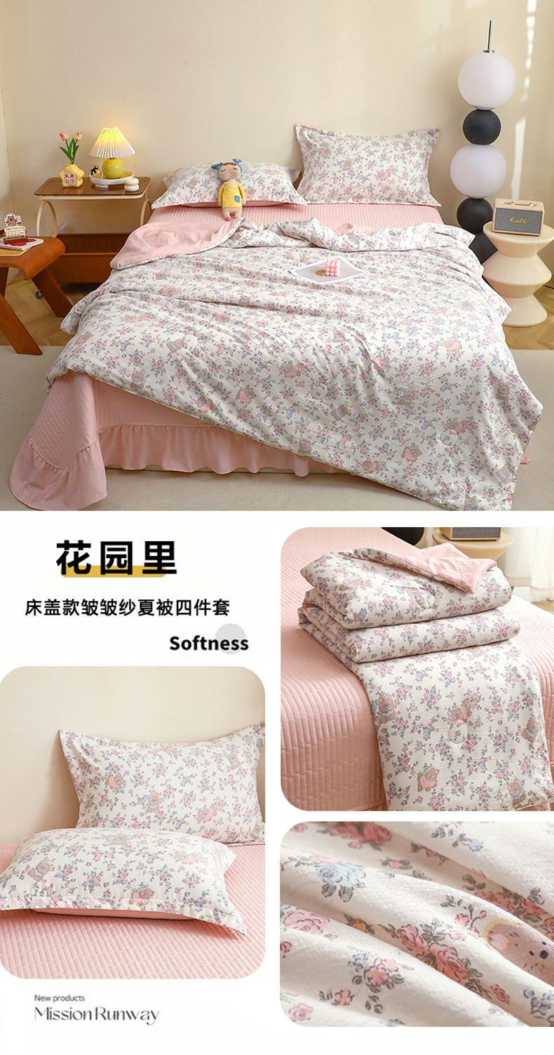 商品名称:人人爱家纺 2025新款皱皱纱床盖夏被四件套 花园里