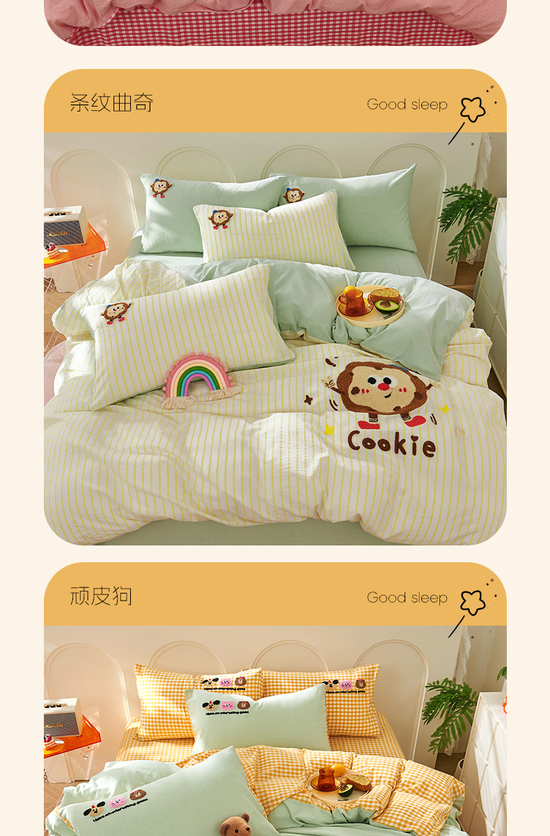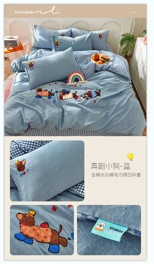 当前位置: 91家纺网 > 商品网购 > 床品套件 > 四件套 > 毛巾绣四件套 > 徕米家居 2025新款色织全棉水洗棉毛巾绣四件套 奔跑小狗-蓝