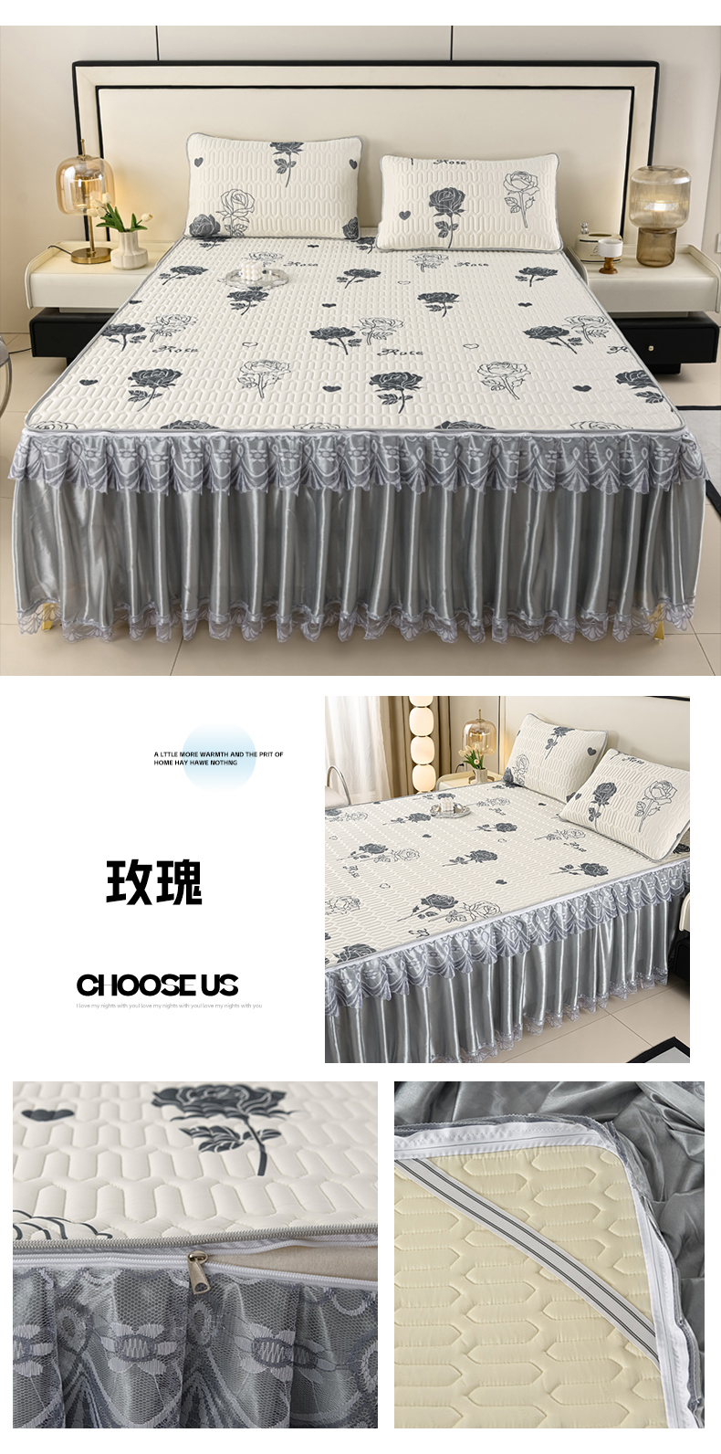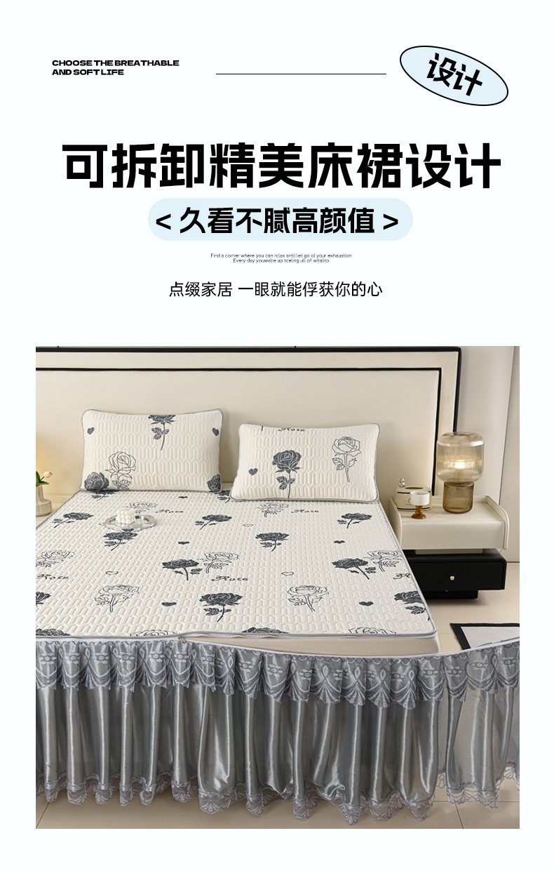 商品名称:牵依 2025新款胶质可拆卸床裙凉席席子 克拉恋人