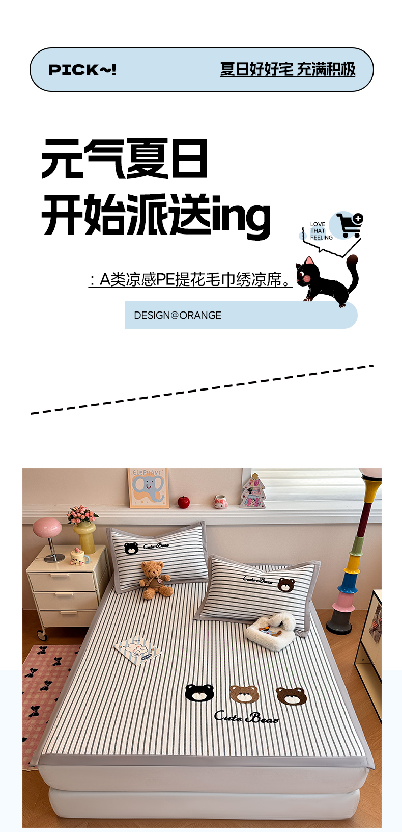 商品名称:蓝邻家纺 2025年新款PE提花卡通毛巾绣凉席系列场景二 邦尼熊