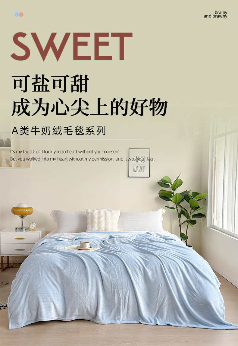 商品名称:卡琪曼 2025新款牛奶绒抗菌防螨毛毯毯子系列 冰融兰