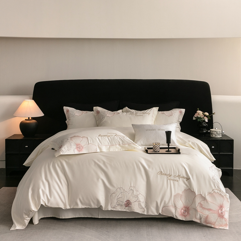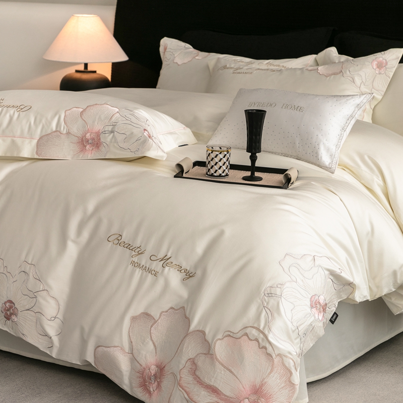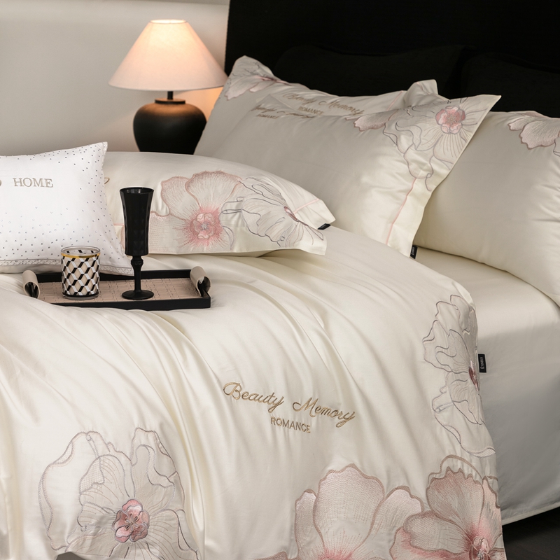 馨蕊家居 2025新款高精密刺绣轻奢风全棉四件套-棉-花至 花至-月光白