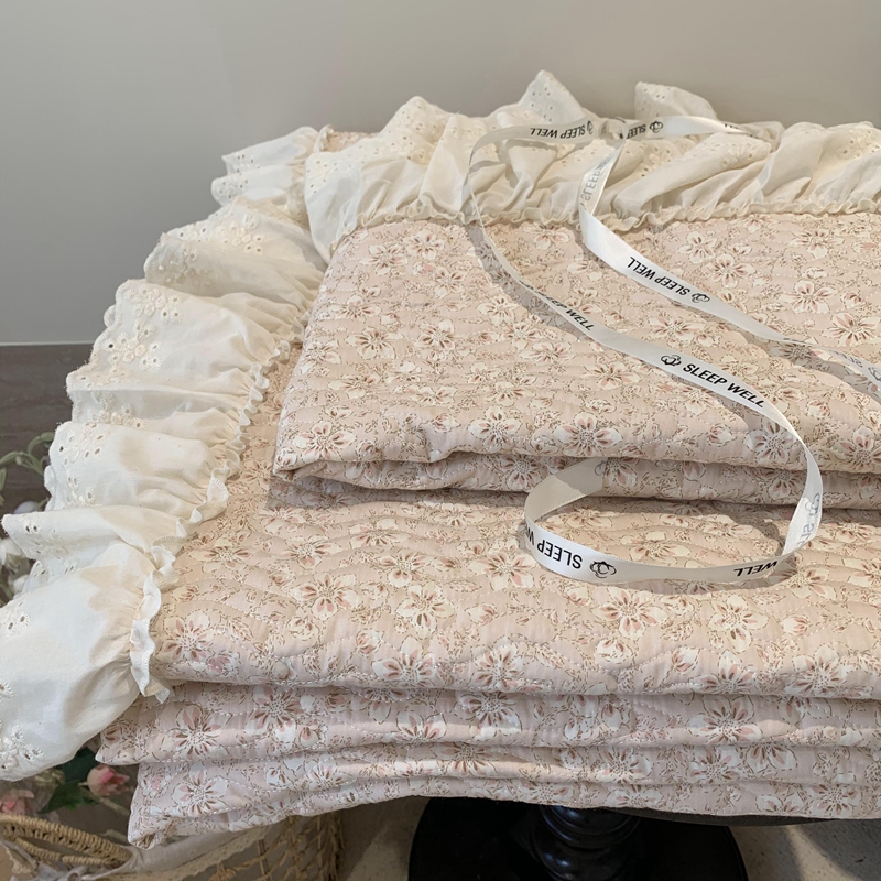 莱豫家纺 2025春夏新款纯棉全棉花边款床盖三件套 樱花