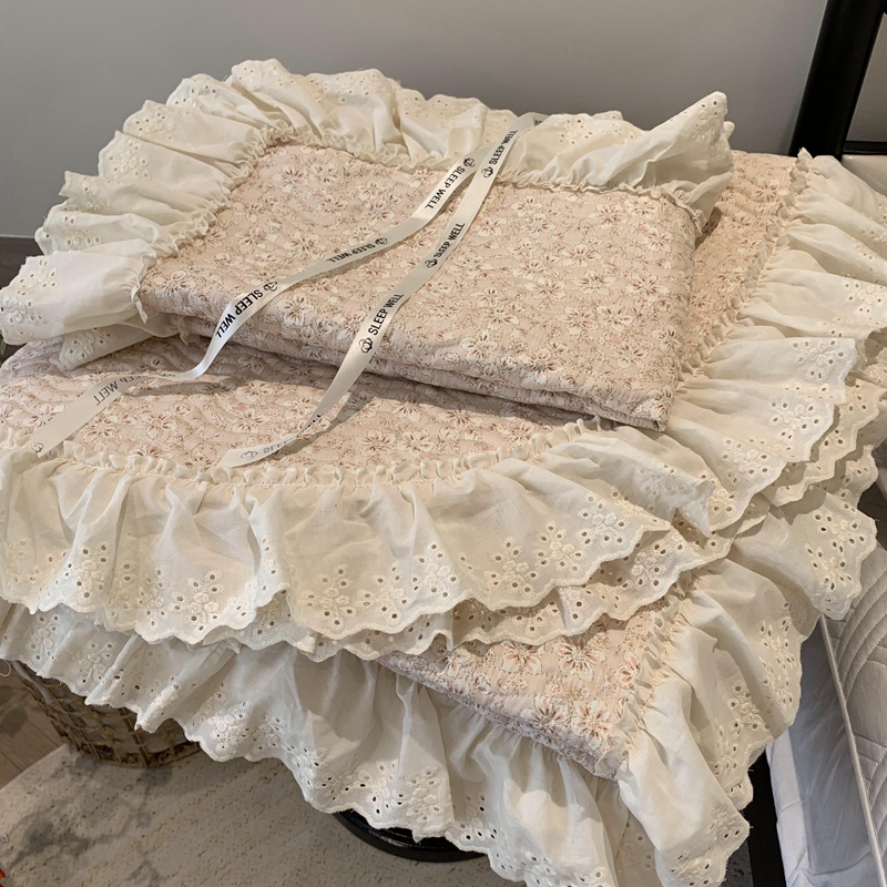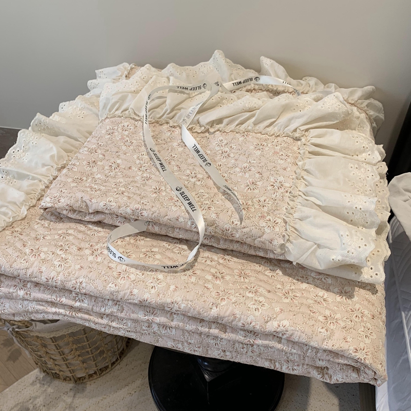 商品名称:莱豫家纺 2025春夏新款纯棉全棉花边款床盖三件套 樱花