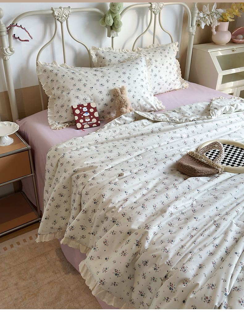 绫韵家纺 2025新品夏季韩式浪漫小花边空调被夏被薄被子套件系列 蔓延