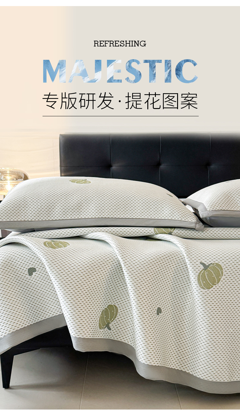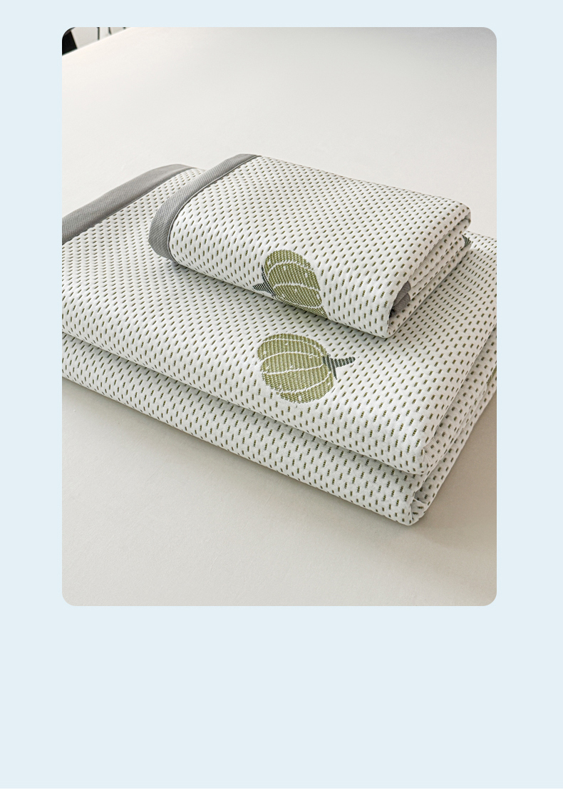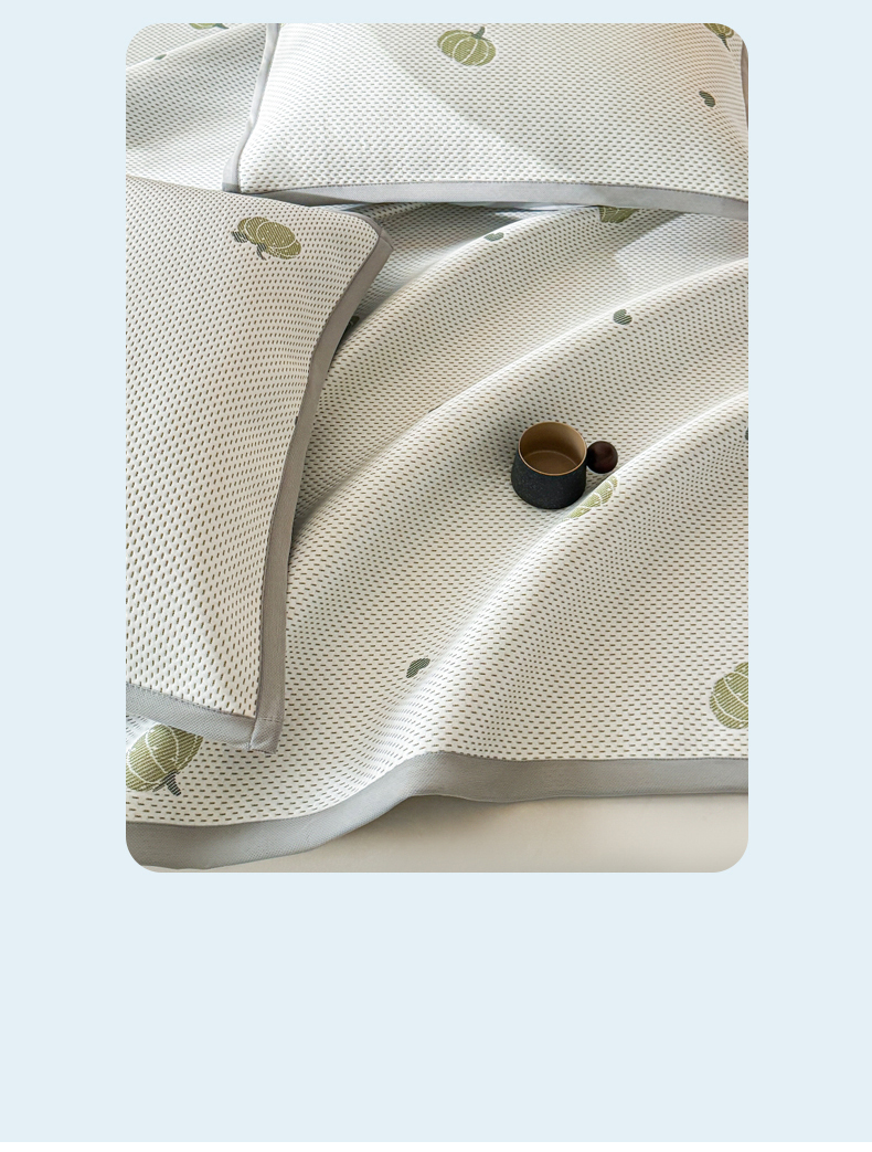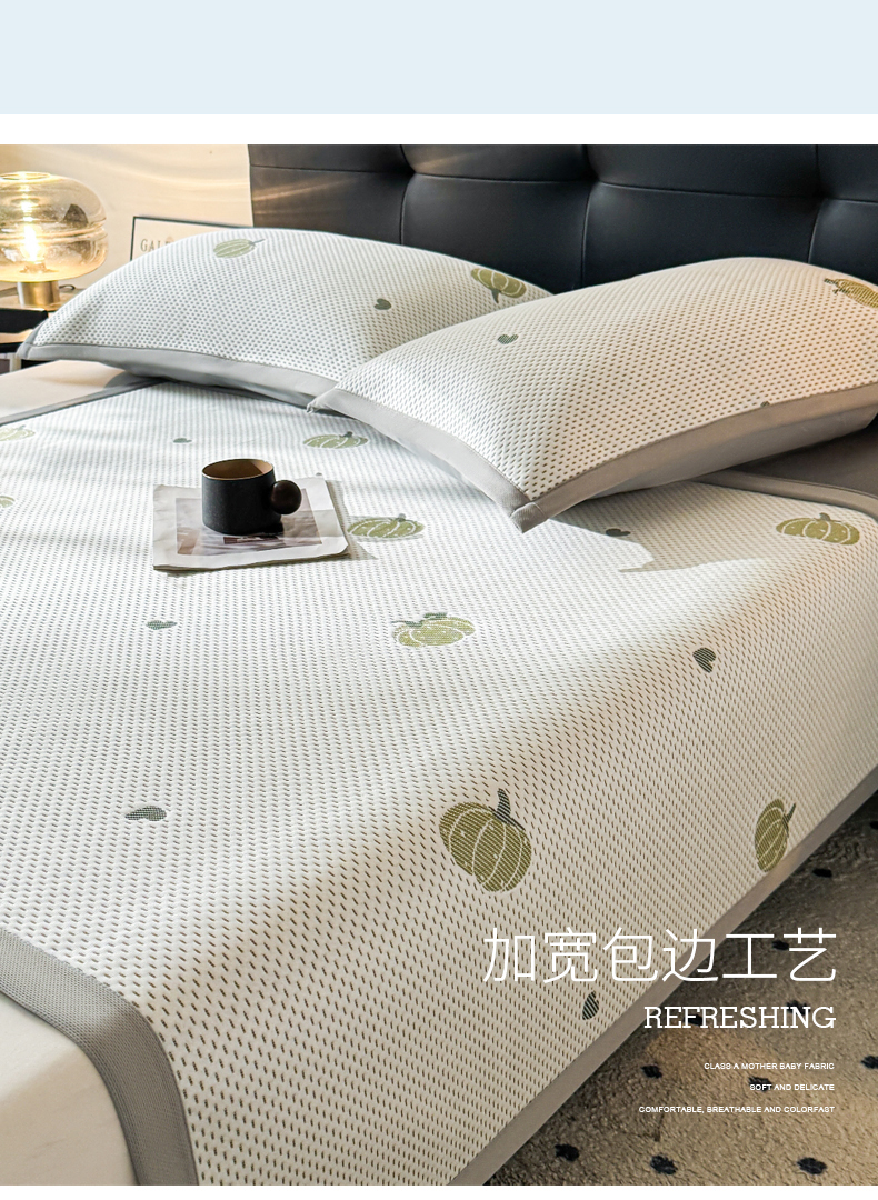 商品名称:LIFE.丽芙 2025春夏季新品A类针织提花冰凉豆豆凉感软席子平铺绑带款冰丝凉席三件套(450克)-风格一 南瓜-绿