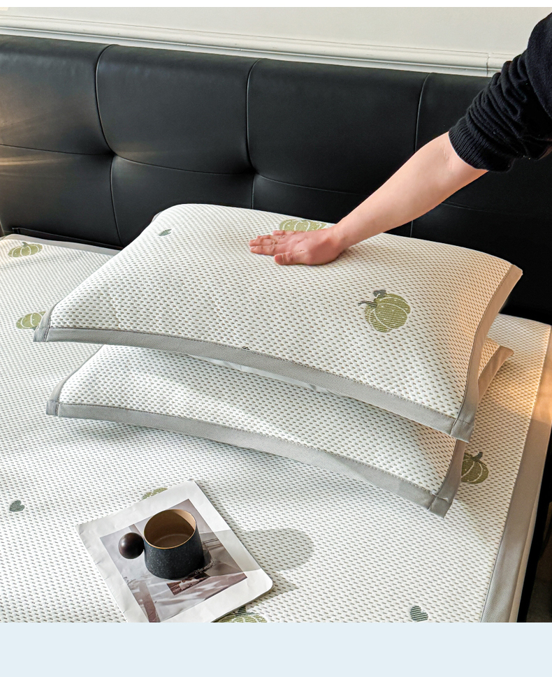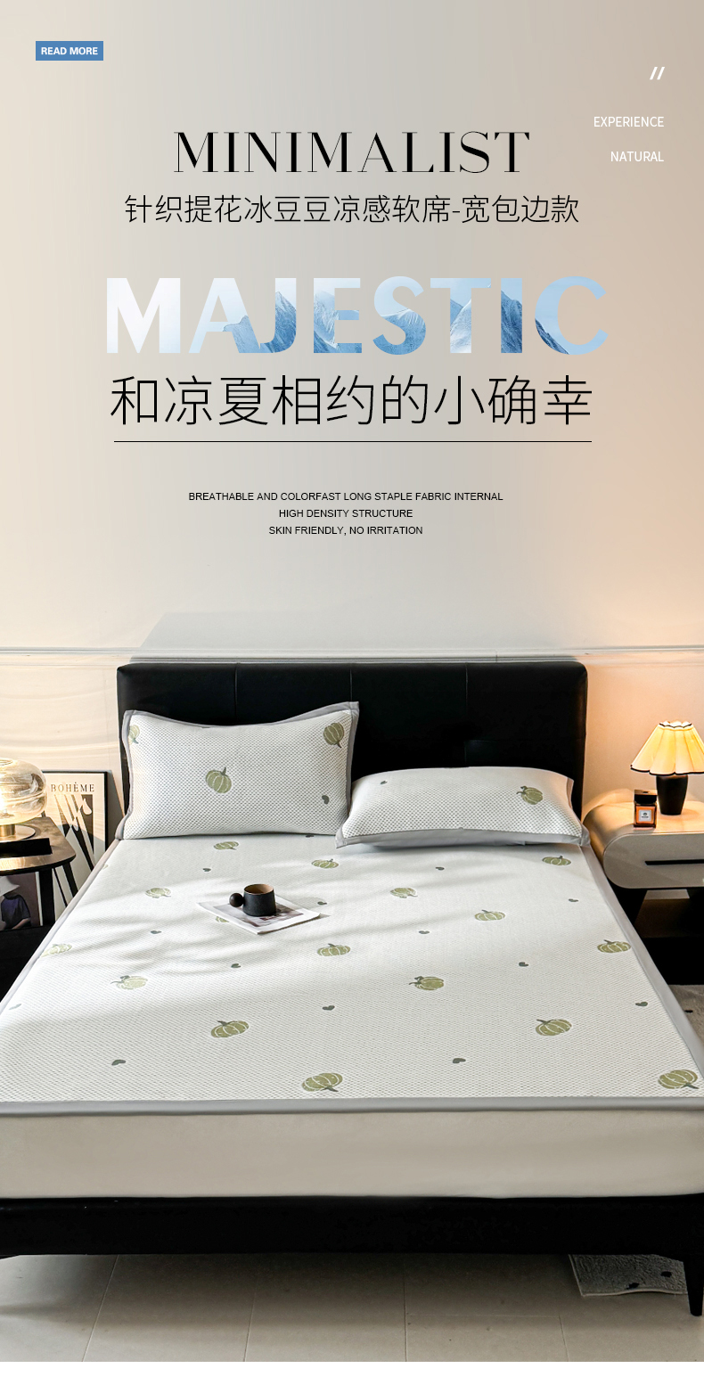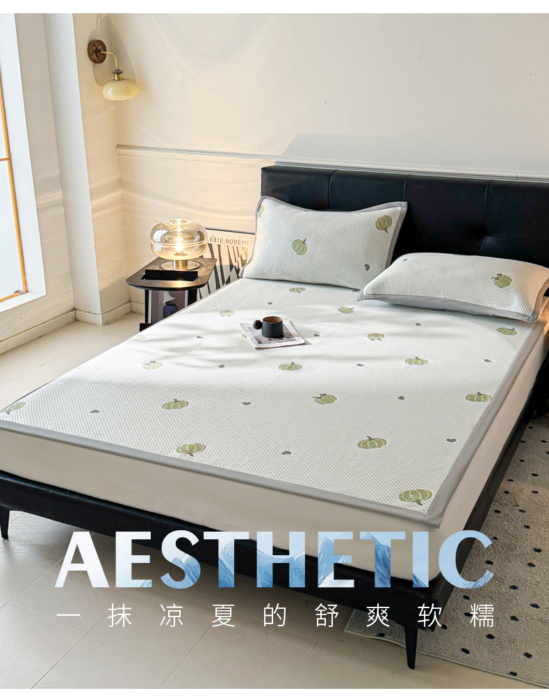 商品名称:LIFE.丽芙 2025春夏季新品A类针织提花冰凉豆豆凉感软席子平铺绑带款冰丝凉席三件套(450克)-风格一 南瓜-绿