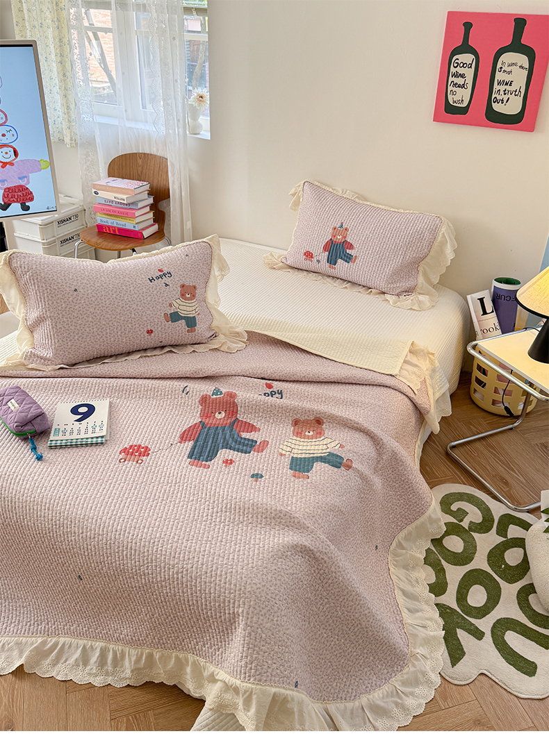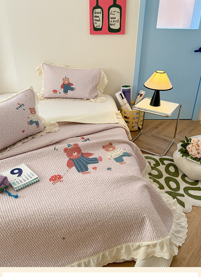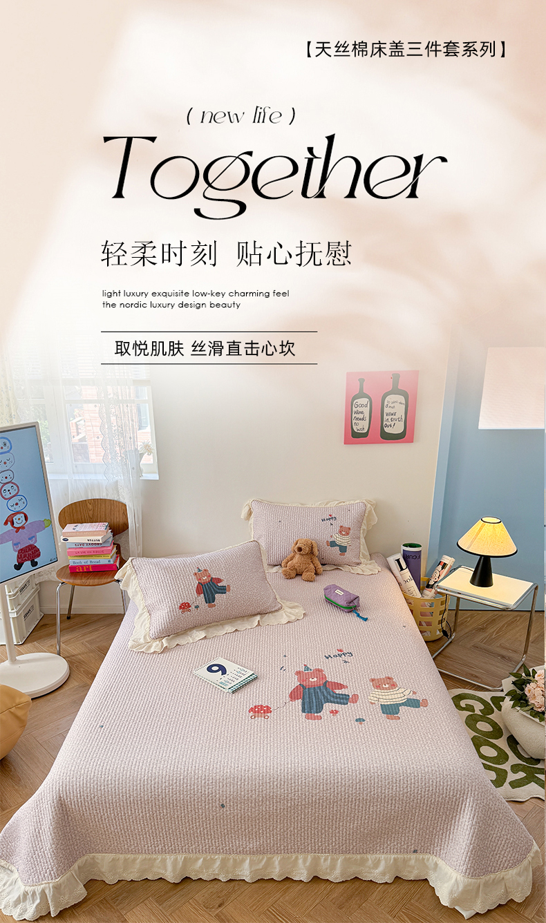 茉夕家纺 2025新款天丝棉大版定位床盖 小熊假日