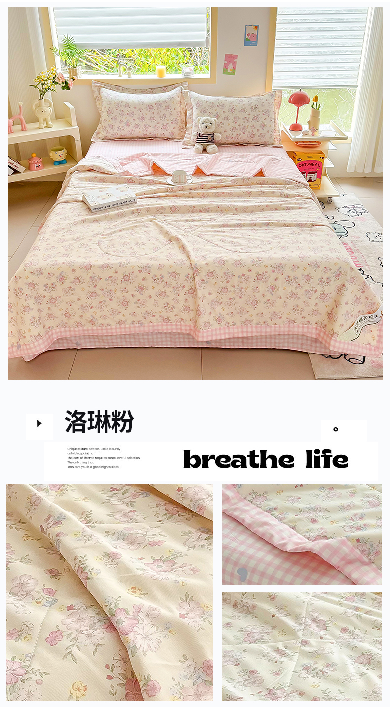(总)栩裕纺织 2025新款全棉双层纱床盖三件套四件套,可可甜心粉,梦寐花都,抹茶小团子-咖,茉莉清风-粉,木映-绿,暮冬-紫,甜音少女-桔,樱桃奶盖-粉