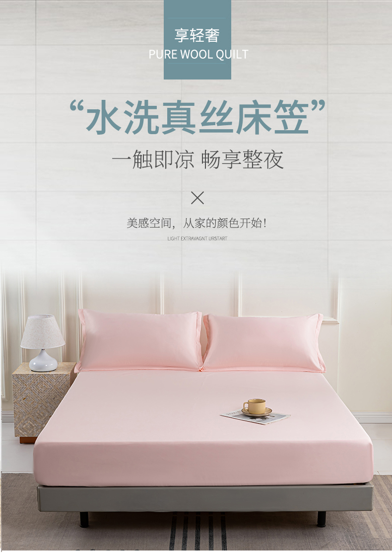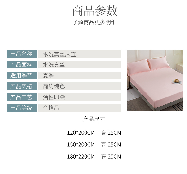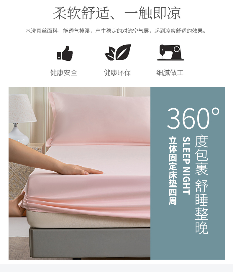 商品名称:潮邦创意家居 2025新款亲肤活性印染水洗真丝床垫凉席单床笠 樱花粉