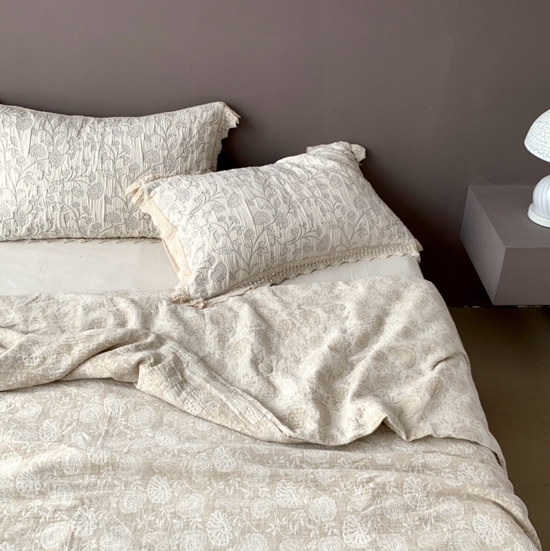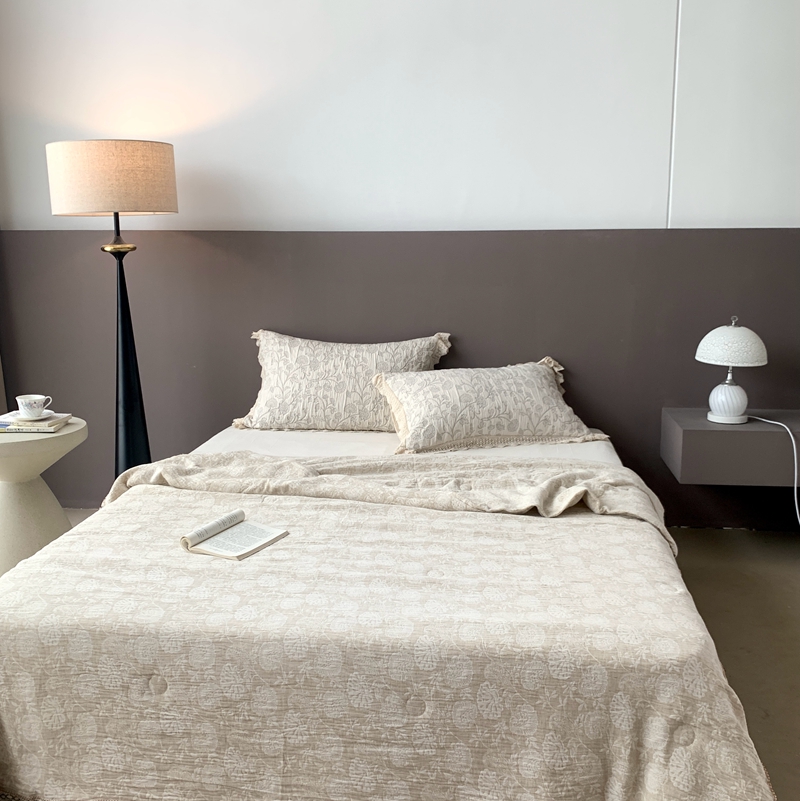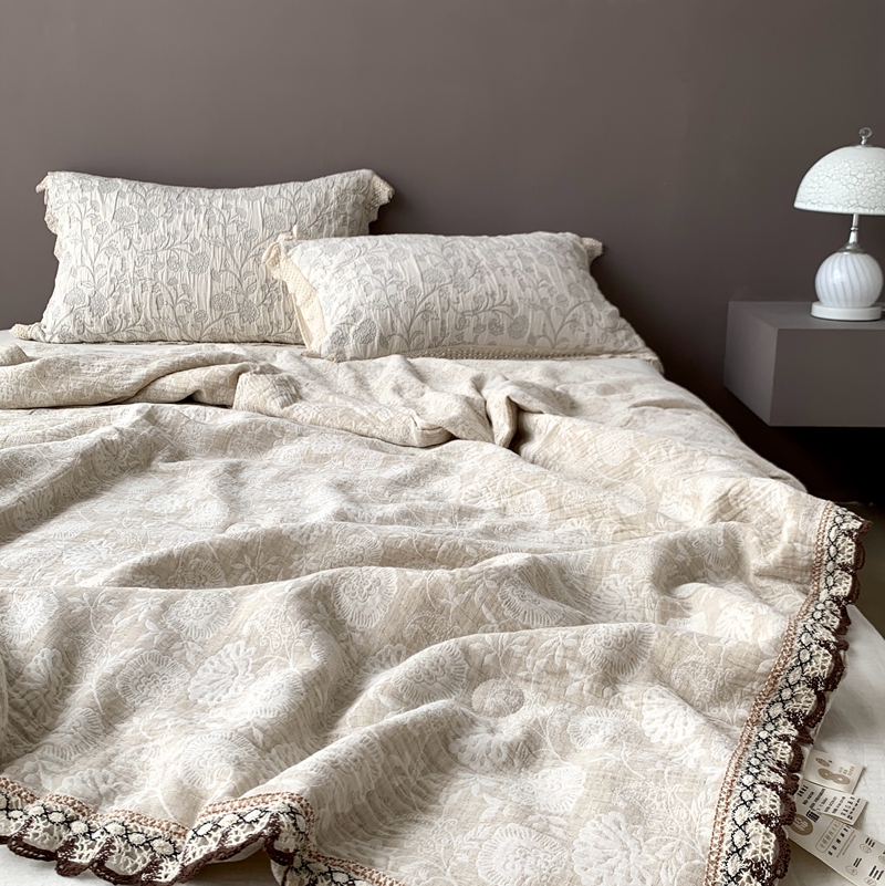 凡客2025新款棉麻色织提花双层纱蚕丝棉夏被(镂空花边款) 半夏花开