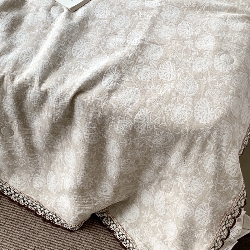 商品名称:凡客2025新款棉麻色织提花双层纱蚕丝棉夏被(镂空花边款) 半夏花开