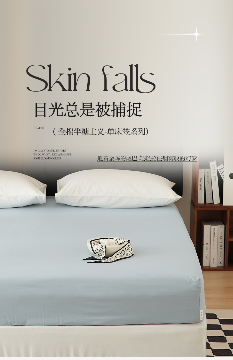 • 91家纺网 家纺一手货源 找家纺 EH家居 2025全棉半糖主义-单品系列-床笠 半糖-光蓝