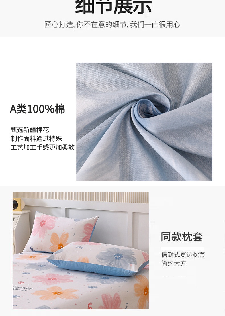 商品名称:宇彬家纺 2025直播新款13070全棉纯棉印花双人单床单枕套三件套喷气小清新简约学生被单 空间