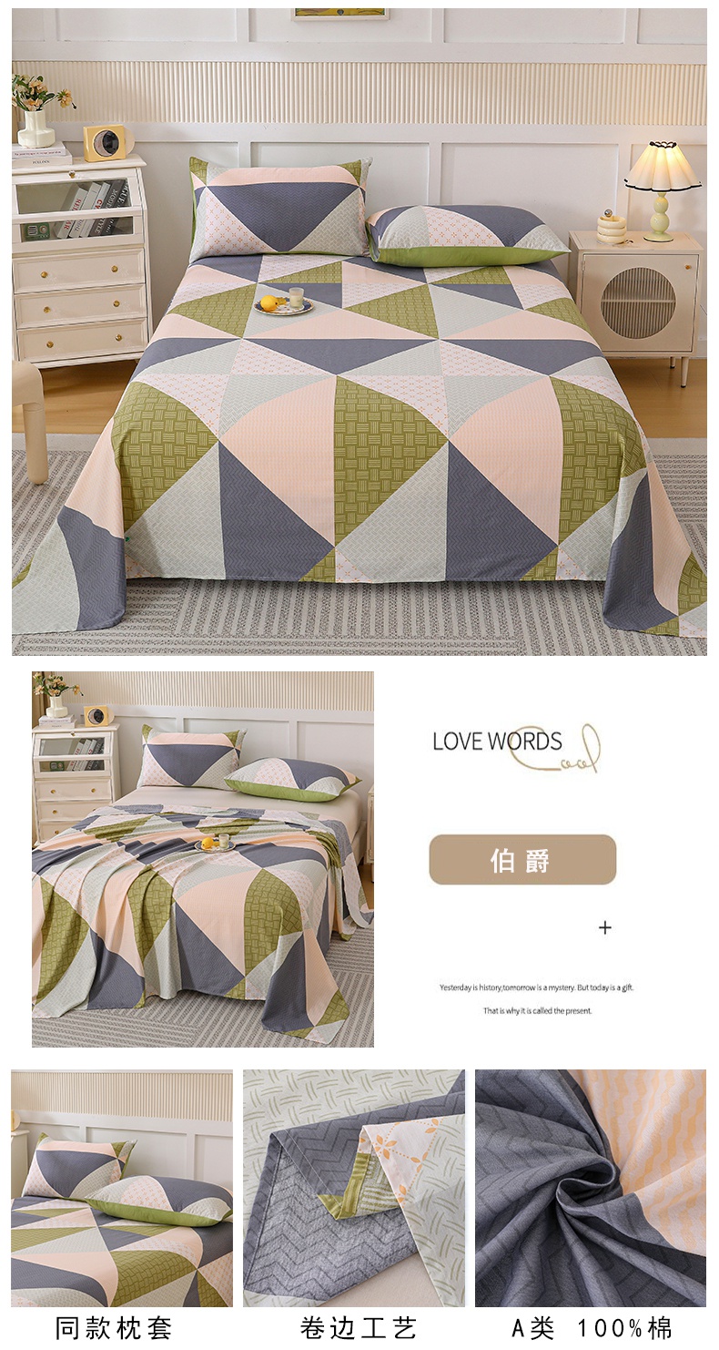 宇彬家纺 2025直播新款13070全棉纯棉印花双人单床单枕套三件套喷气小清新简约学生被单 空间