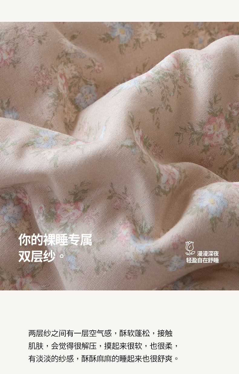 商品名称:安莱生活 2025新款全棉纯棉双层纱复古花边款夏被夏凉被空调被四件套 暖阳