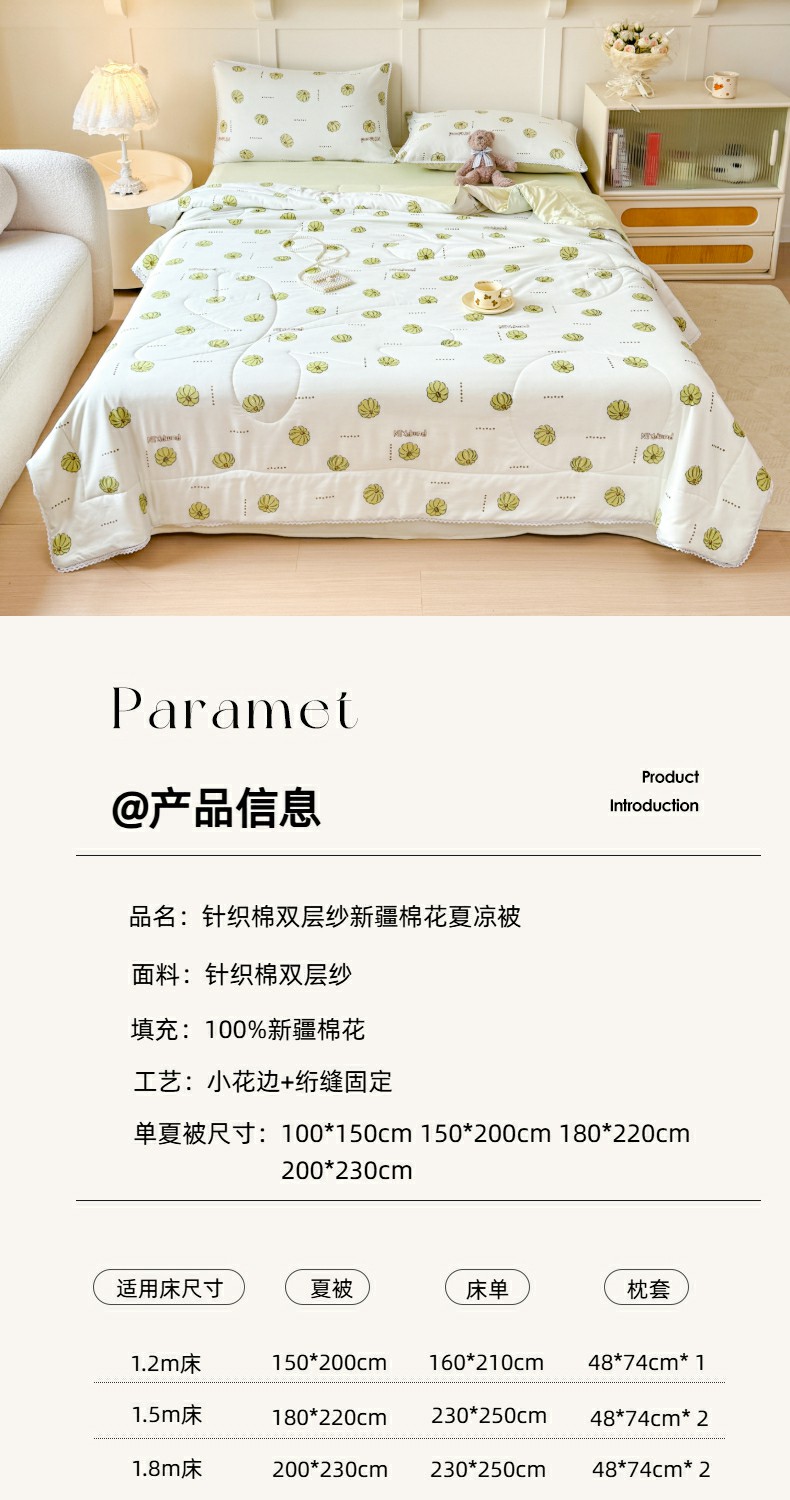 • 适用季节: 空调被/夏凉被