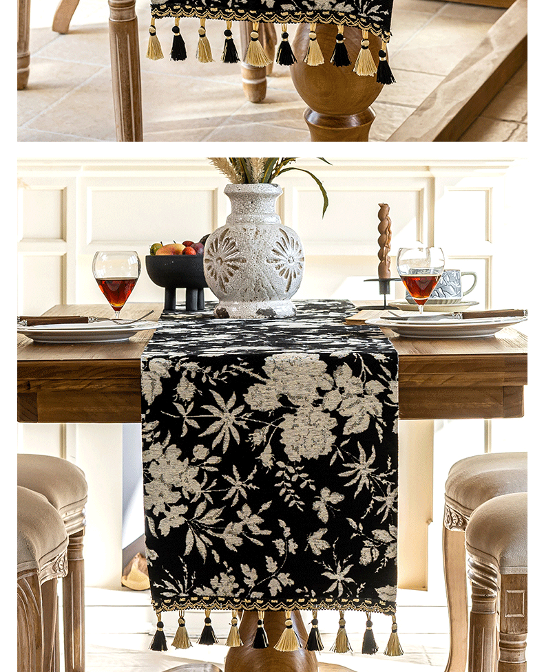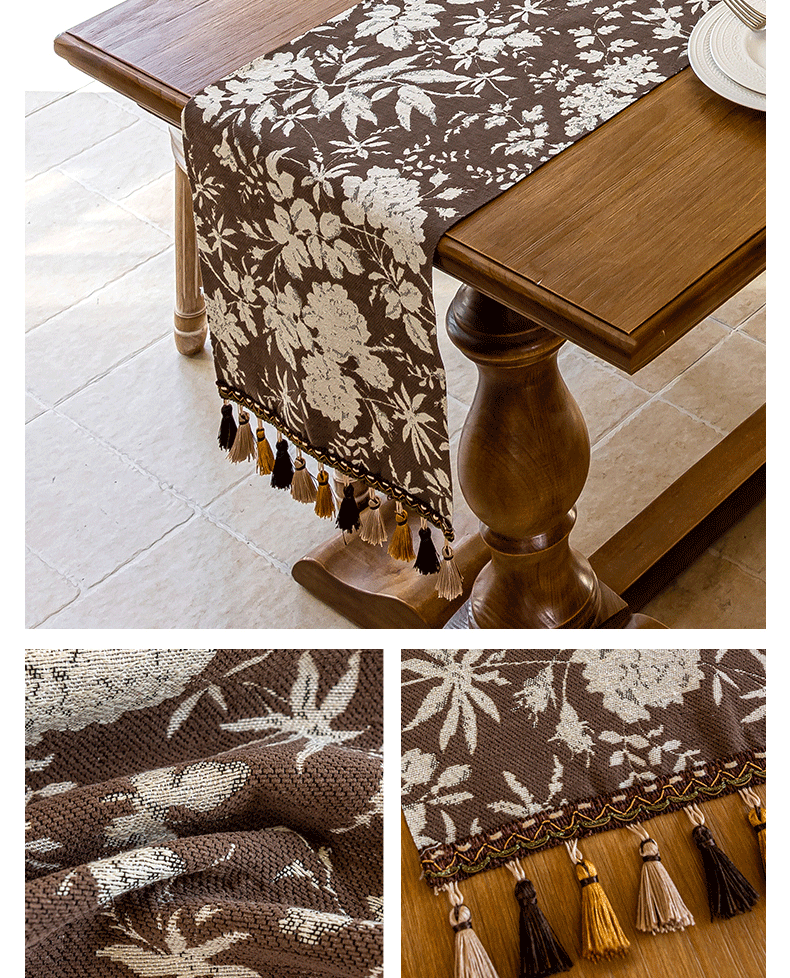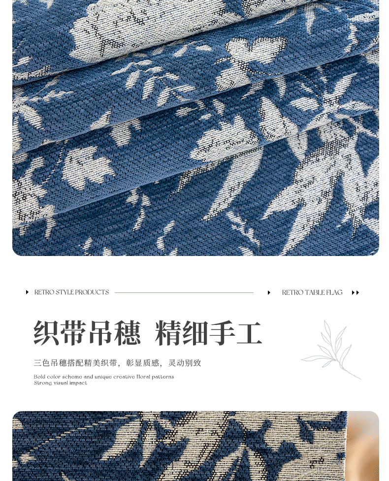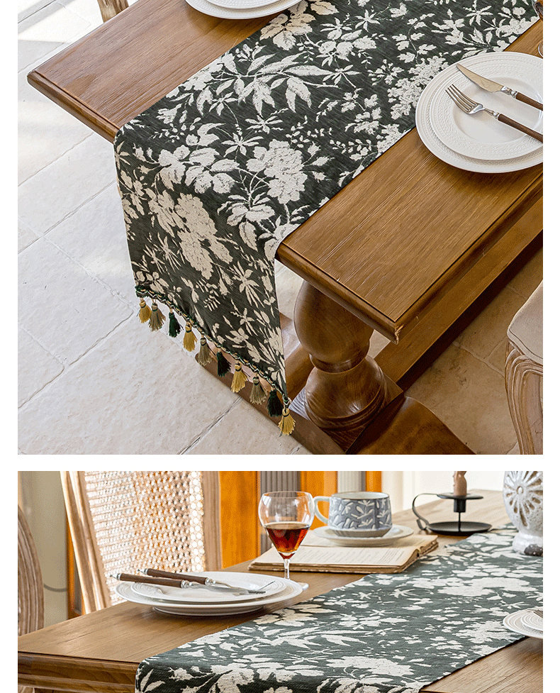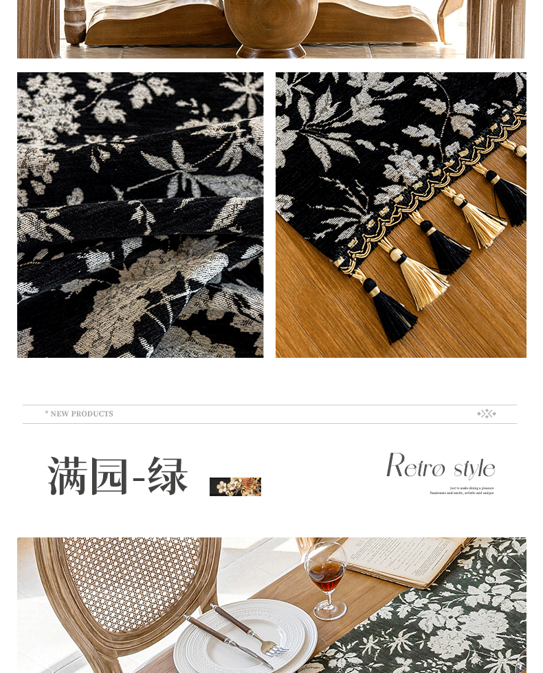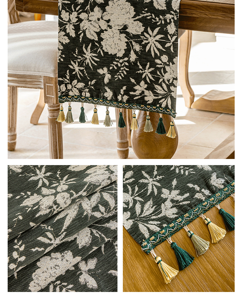 当前位置: 91家纺网 > 商品网购 > 居家布艺 > 餐桌布 > (总)南通大梧纺织 2025新款雪尼尔提花织带吊穗满园桌旗 定制:15*长+9元