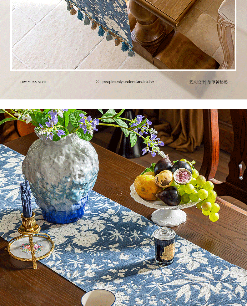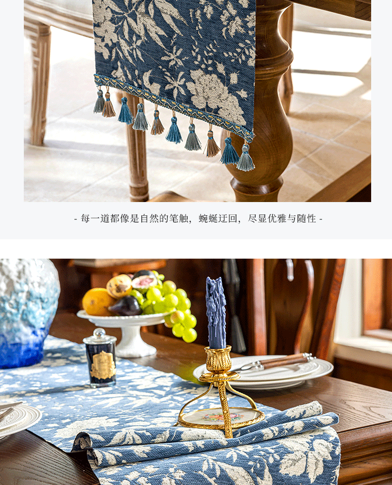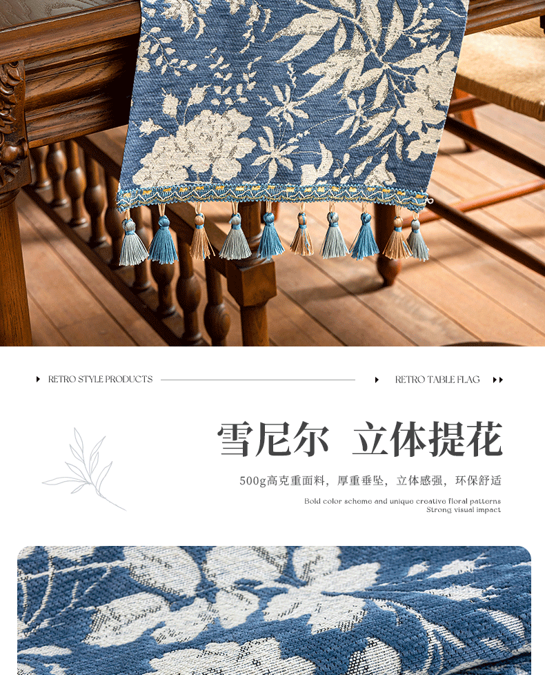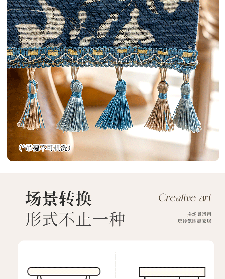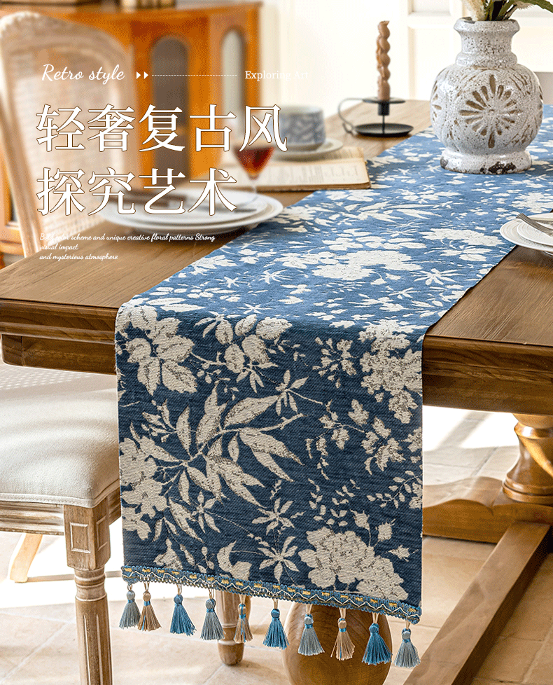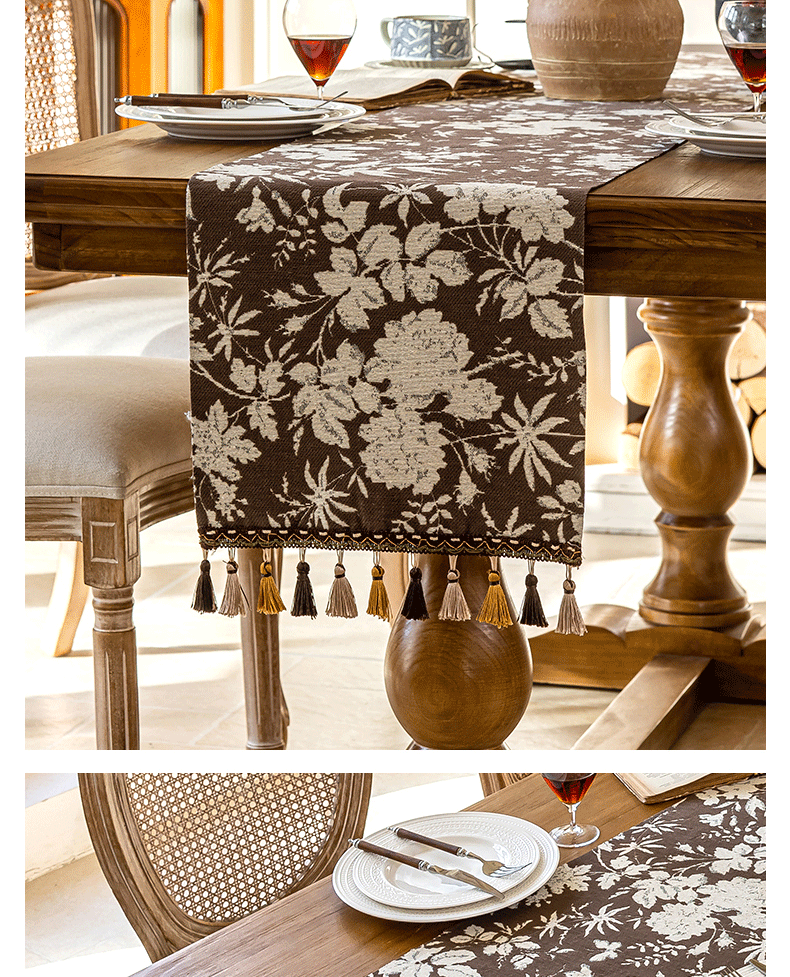 当前位置: 91家纺网 > 商品网购 > 居家布艺 > 餐桌布 > (总)南通大梧纺织 2025新款雪尼尔提花织带吊穗满园桌旗 定制:15*长+9元