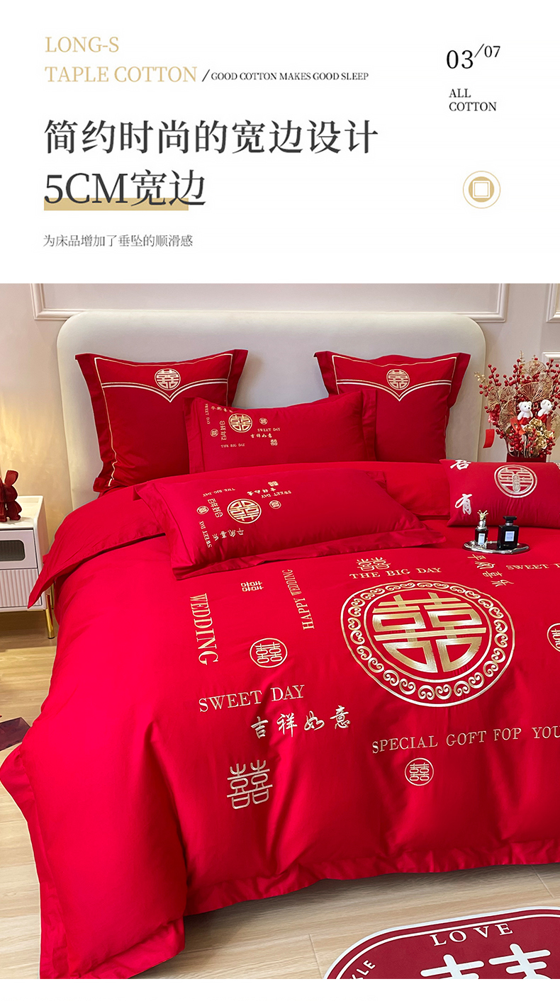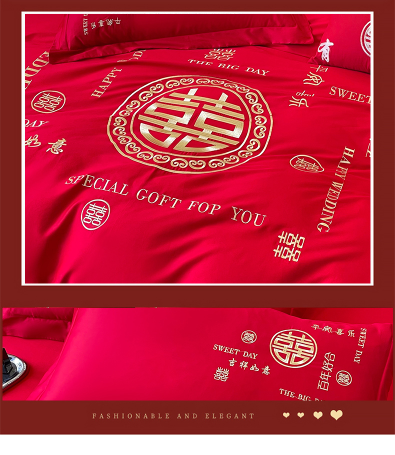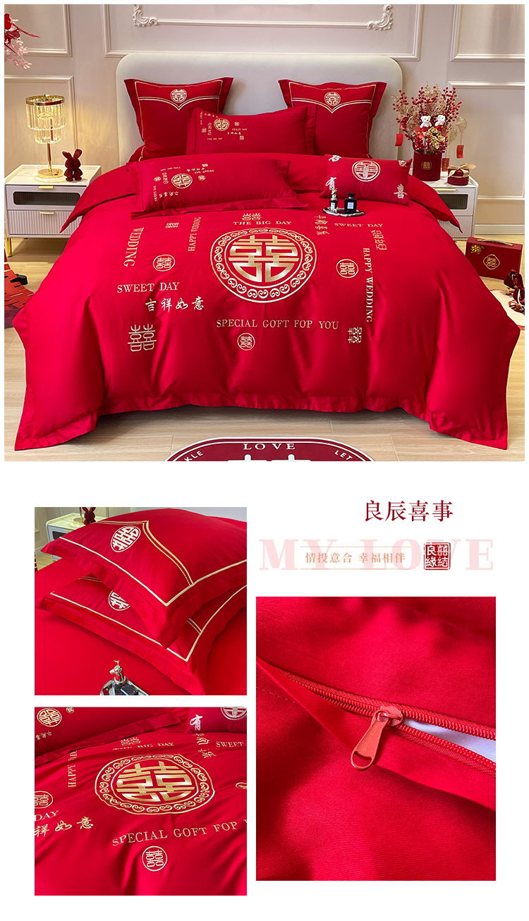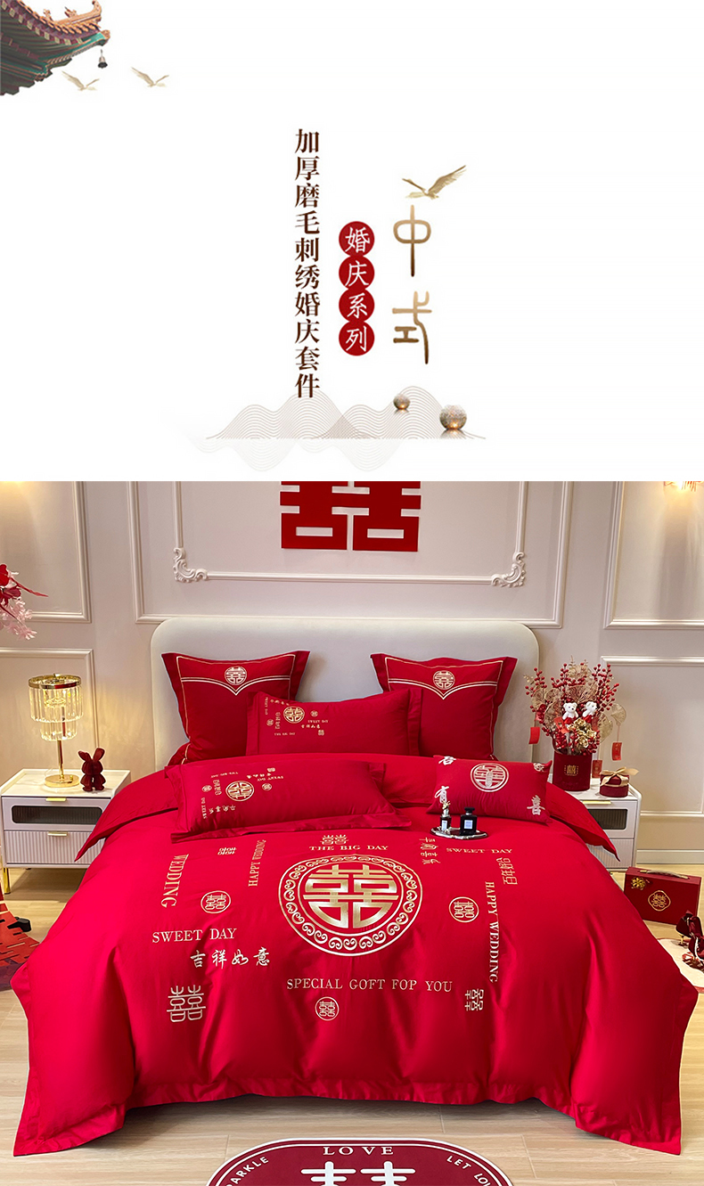 当前位置: 91家纺网 > 商品网购 > 床品套件 > 四件套 > 婚庆四件套 > 洽想家 2025新款磨毛婚庆四件套多件套 良辰喜事