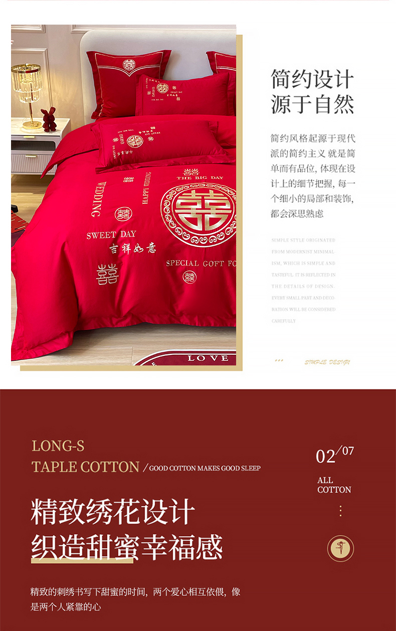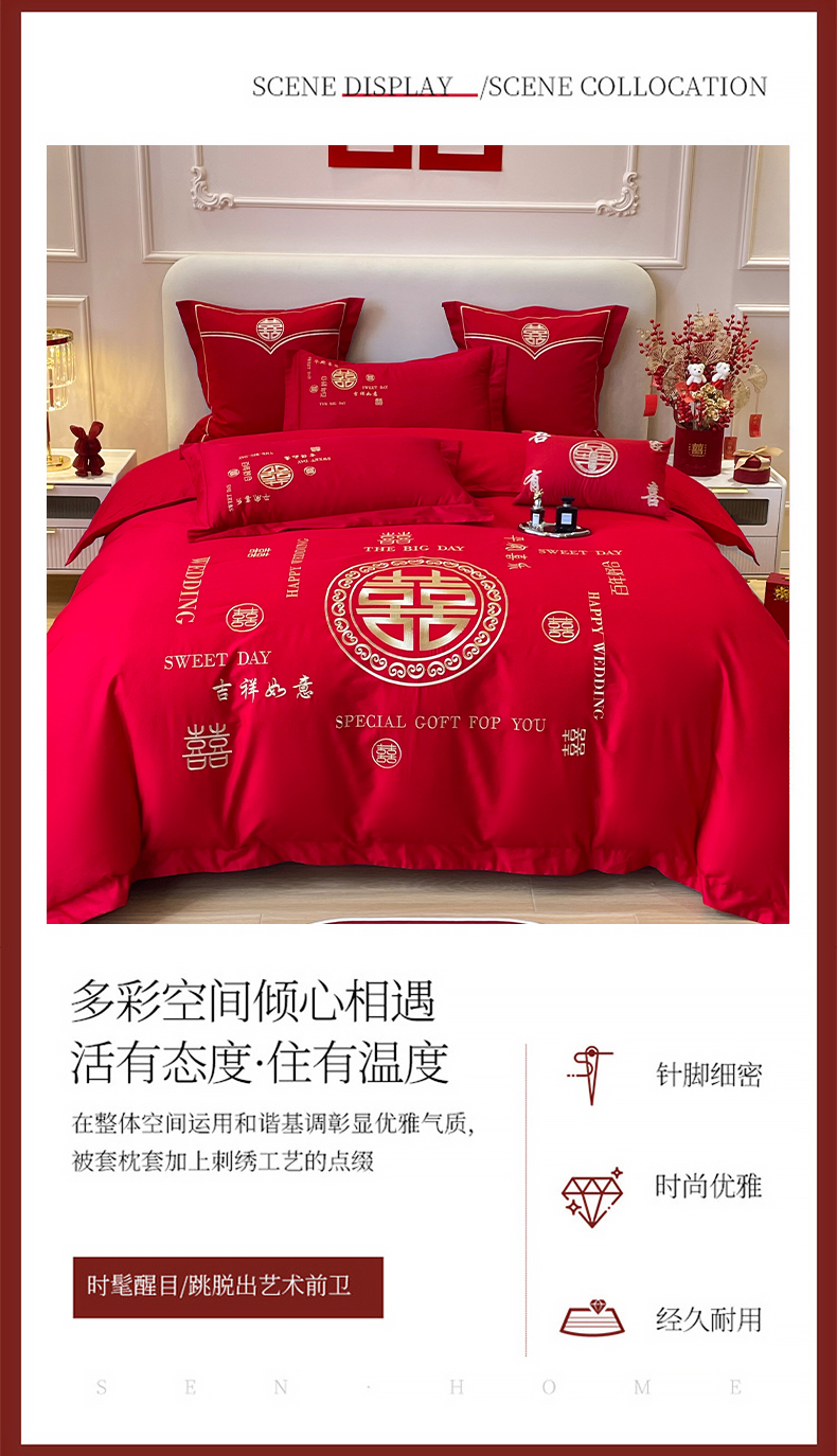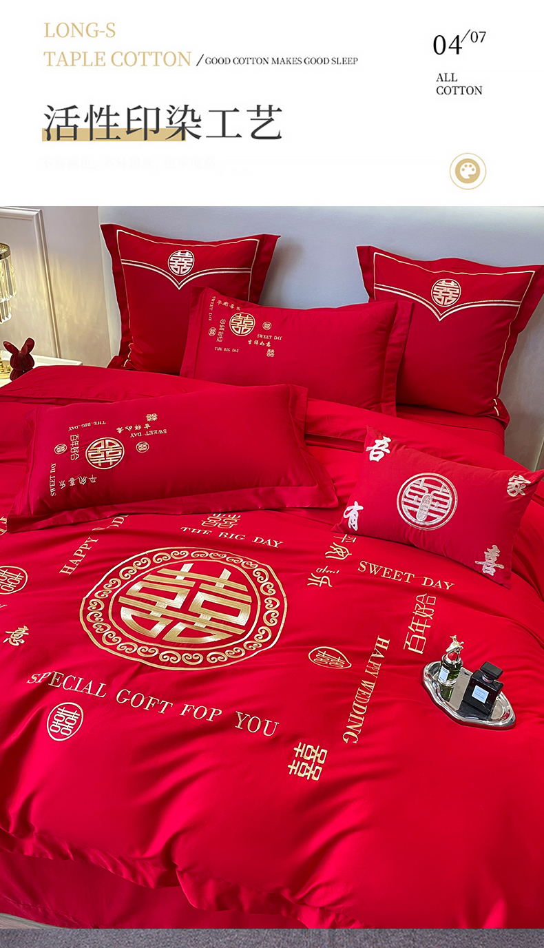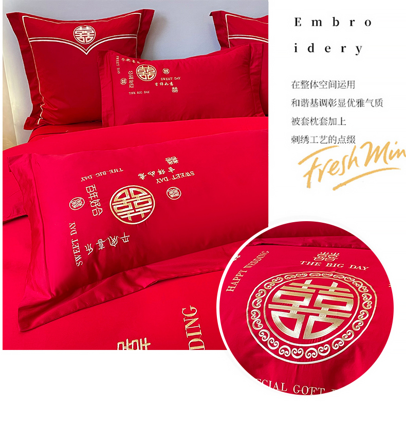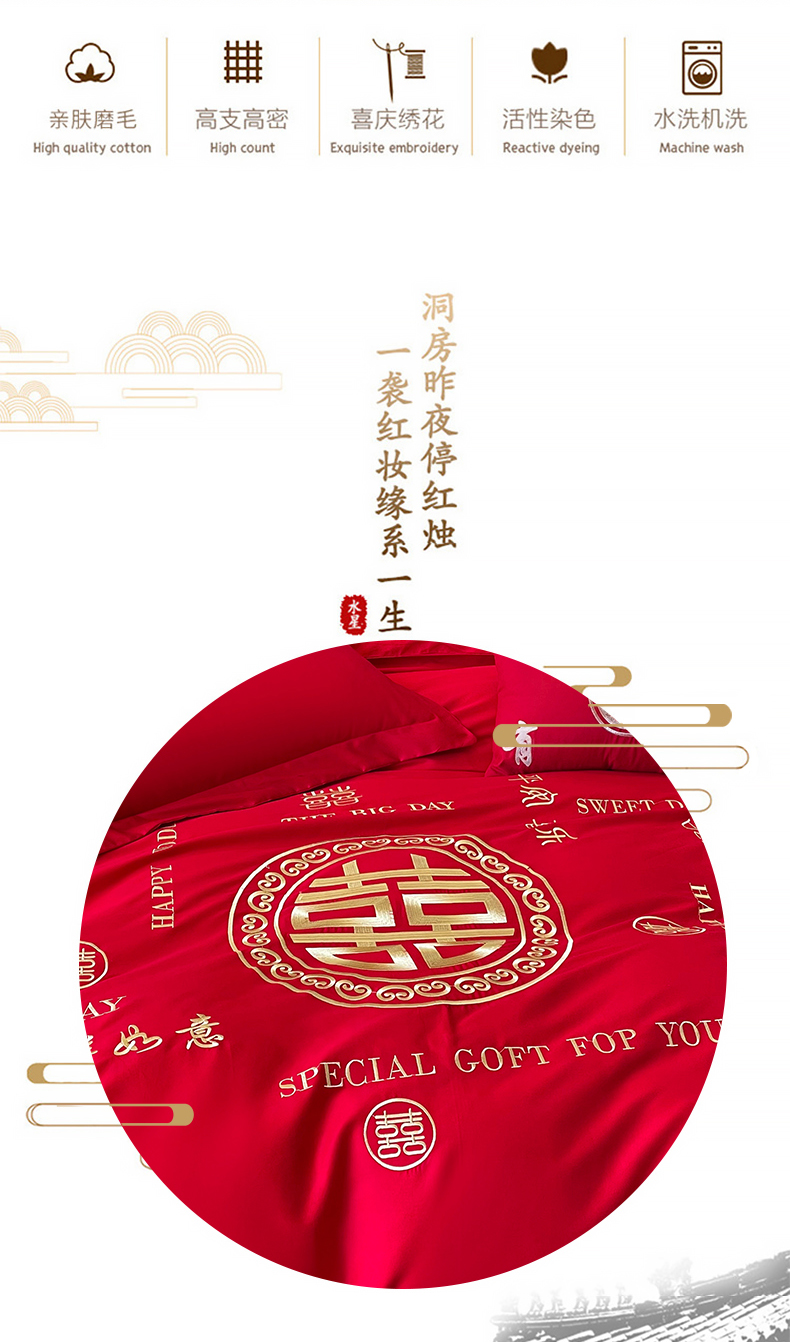 当前位置: 91家纺网 > 商品网购 > 床品套件 > 四件套 > 婚庆四件套 > 洽想家 2025新款磨毛婚庆四件套多件套 良辰喜事