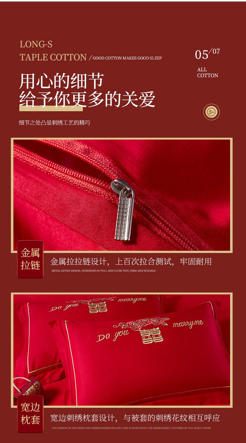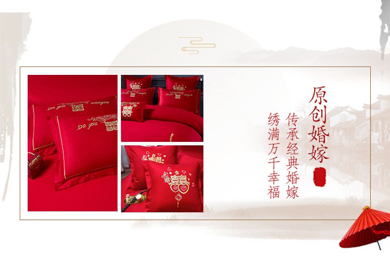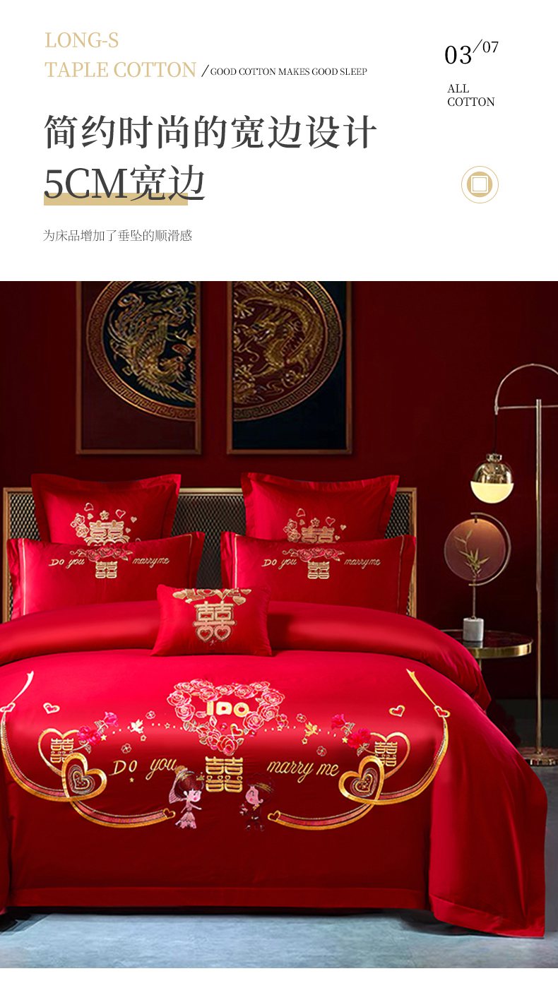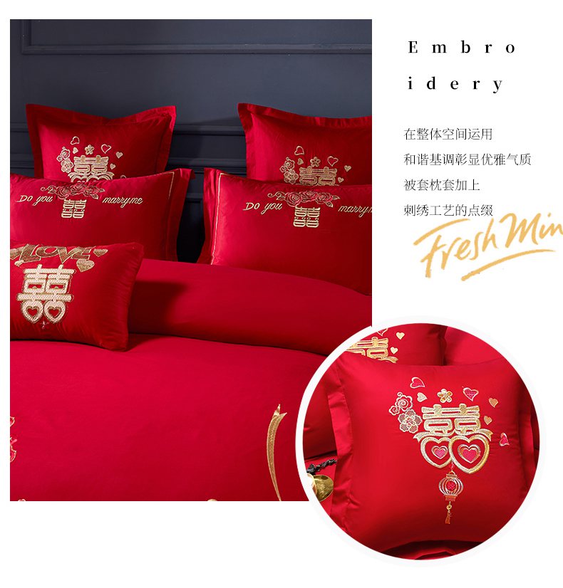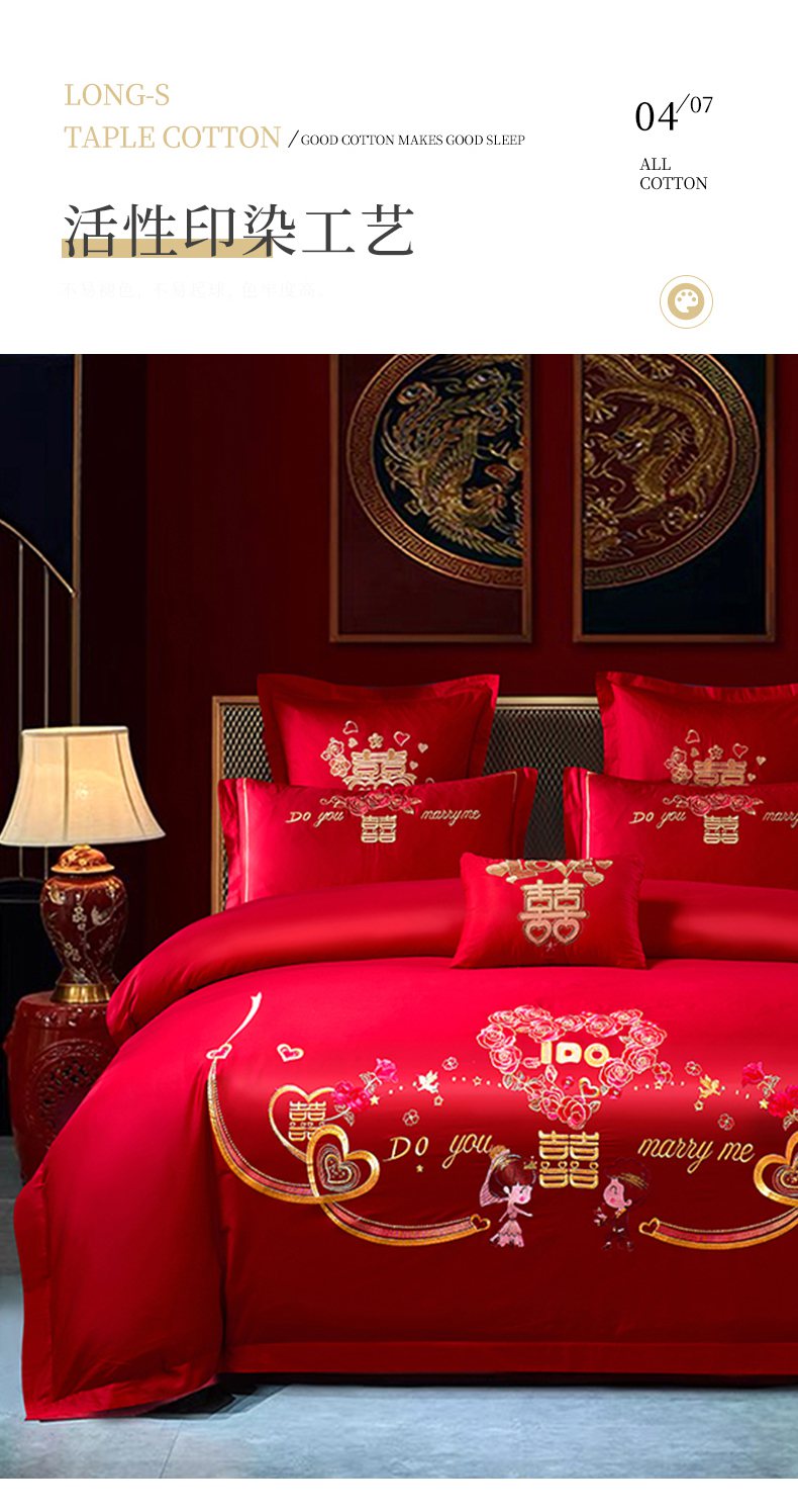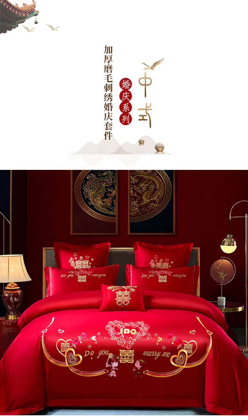 当前位置: 91家纺网 > 商品网购 > 床品套件 > 四件套 > 婚庆四件套 > 洽想家 2025新款亲肤棉磨毛刺绣婚庆四件套多件套 情定三生