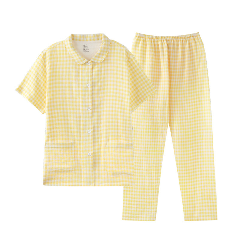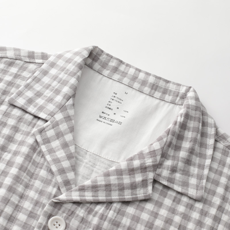商品名称:良品汇馆 2025新款日式无印水洗全棉纯棉双层纱睡衣良品女纯棉短袖长裤棉夏季情侣家居服 男款糖果灰短袖
