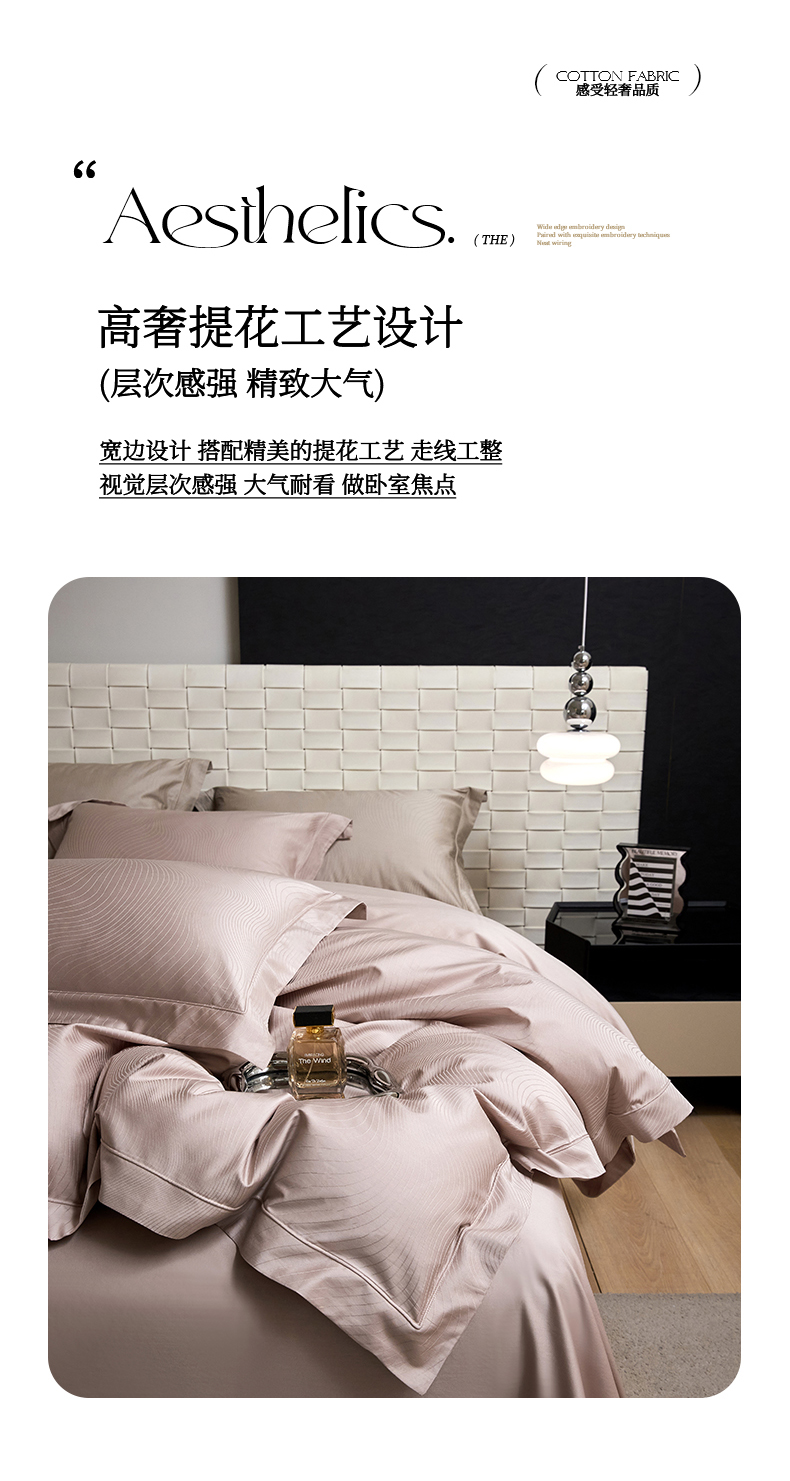 商品名称:洽想家 2025新款长绒棉贡缎提花手工立体埋绳工艺四件套礼盒包装 奢华魅力-樱花粉