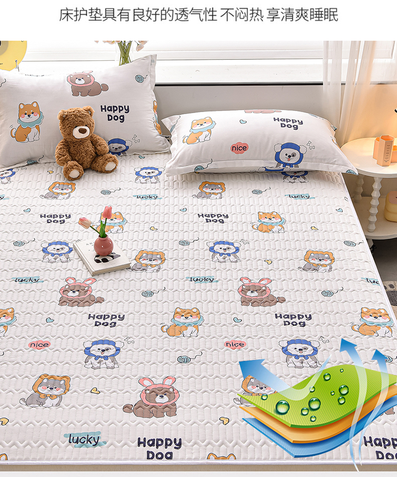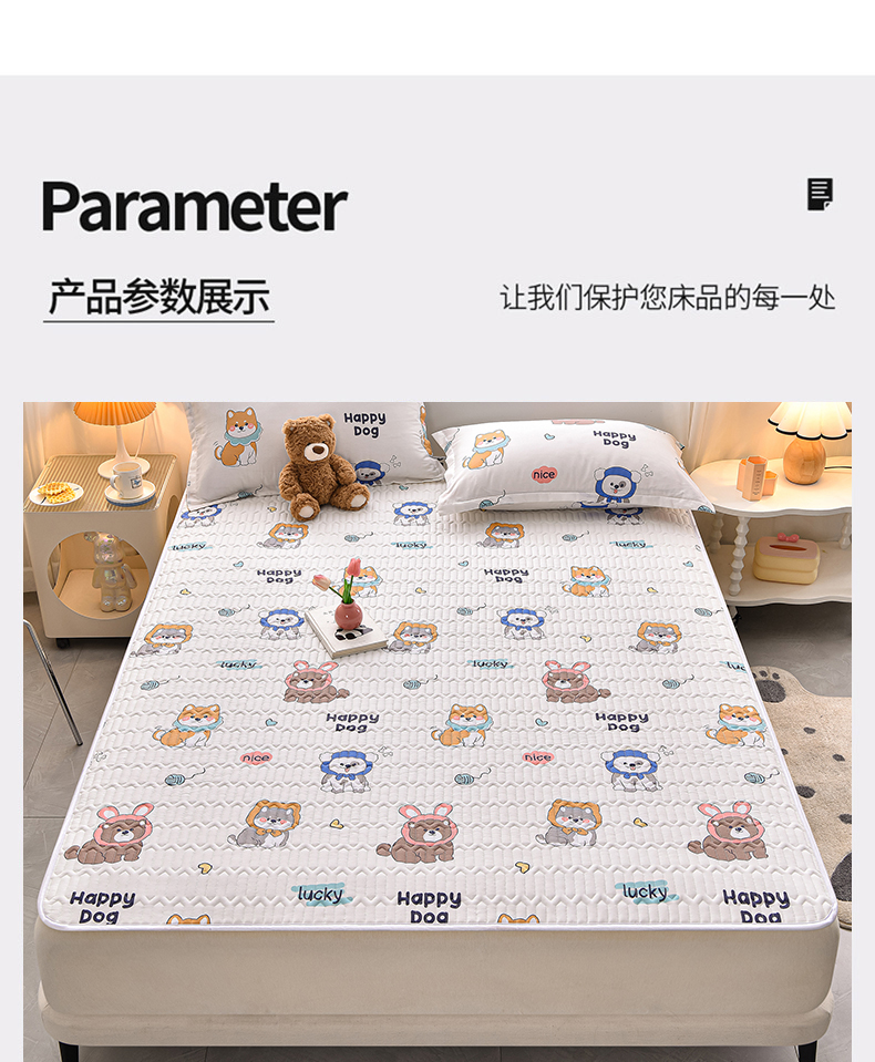 床笠人家 2025新款全棉夹棉防水床垫 嗨皮狗,嗨皮狗