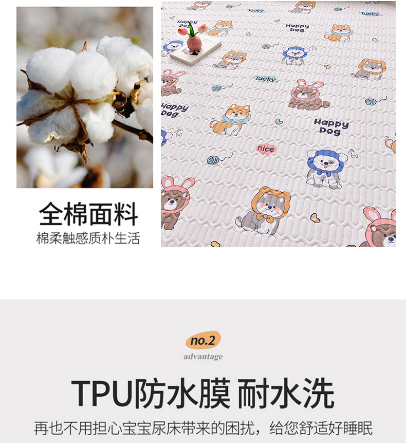 商品名称:床笠人家 2025新款全棉夹棉防水床垫 嗨皮狗