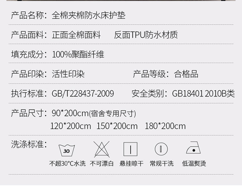 床笠人家 2025新款全棉夹棉防水床垫 德芙,德芙