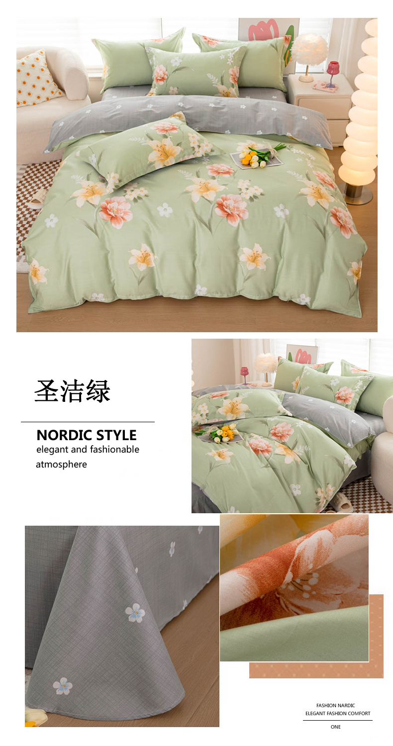 当前位置: 91家纺网 > 商品网购 > 床品套件 > 四件套 > 全棉普通四件套 > 贝兰仙奴 2025春夏新款全棉纯棉12868印花四件套 圣洁绿