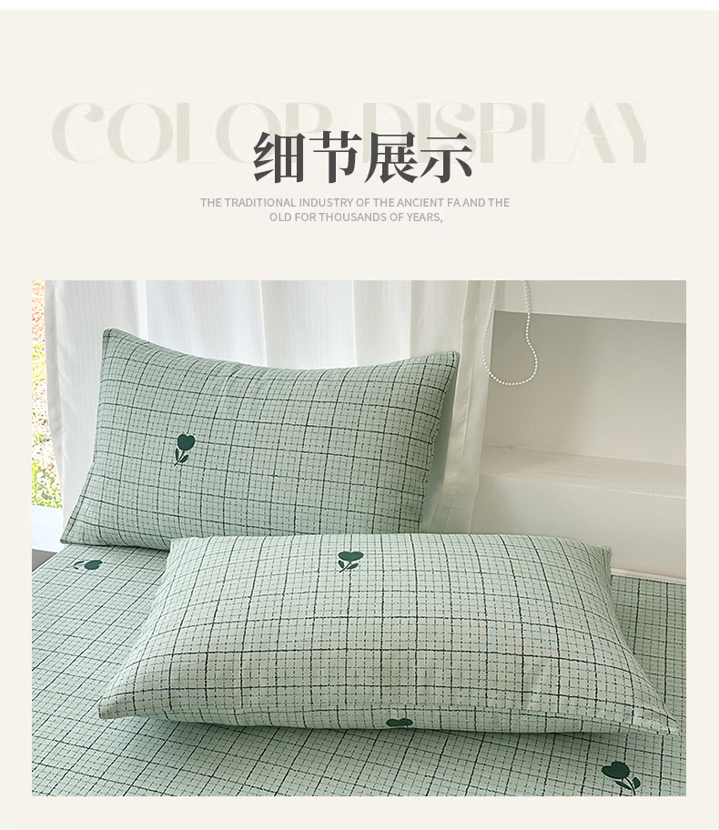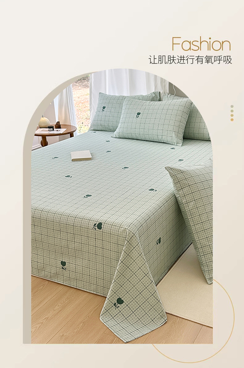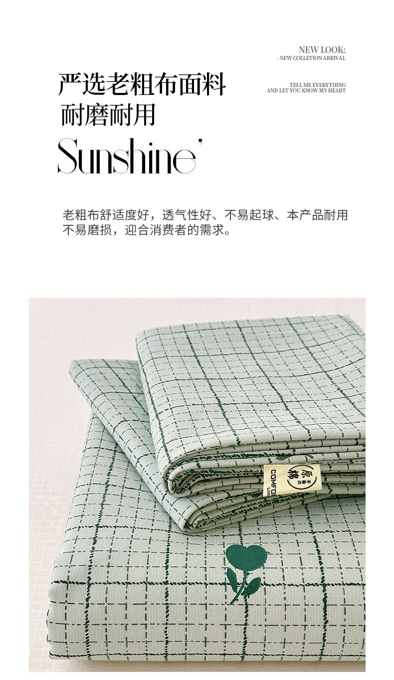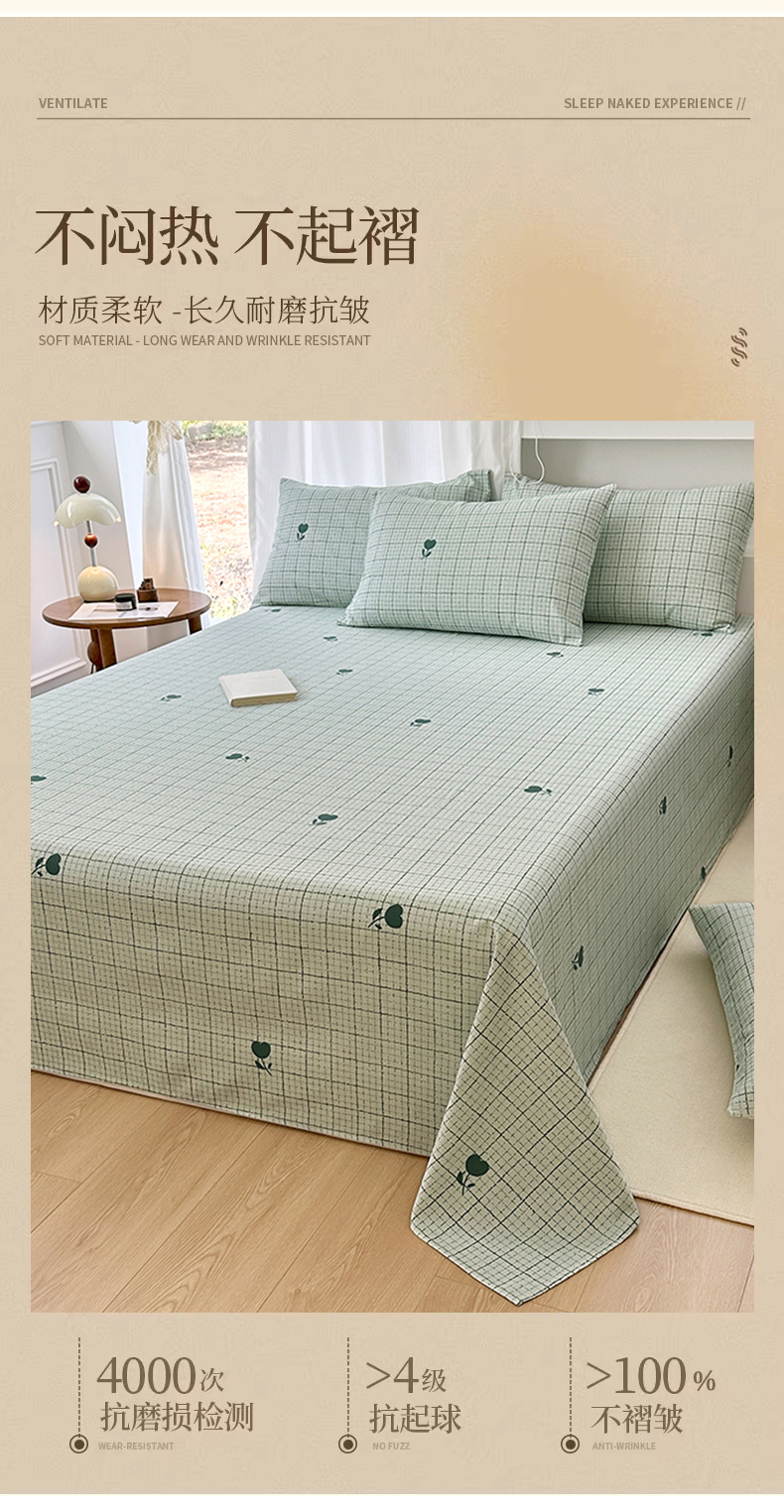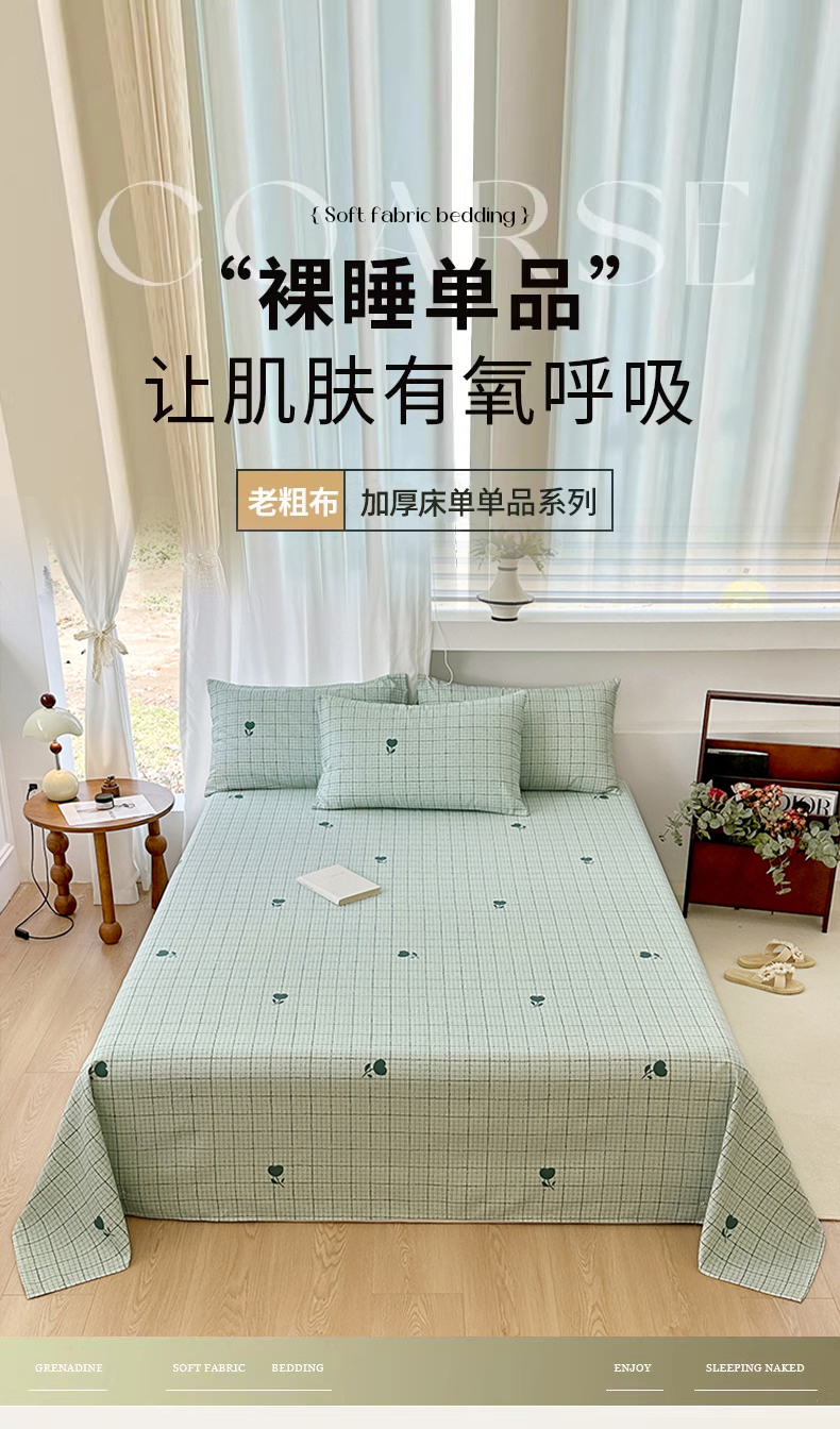 • 91家纺网 家纺一手货源 找家纺 家贝爱2025原棉印花老粗布床单凉席三件套 简格小花