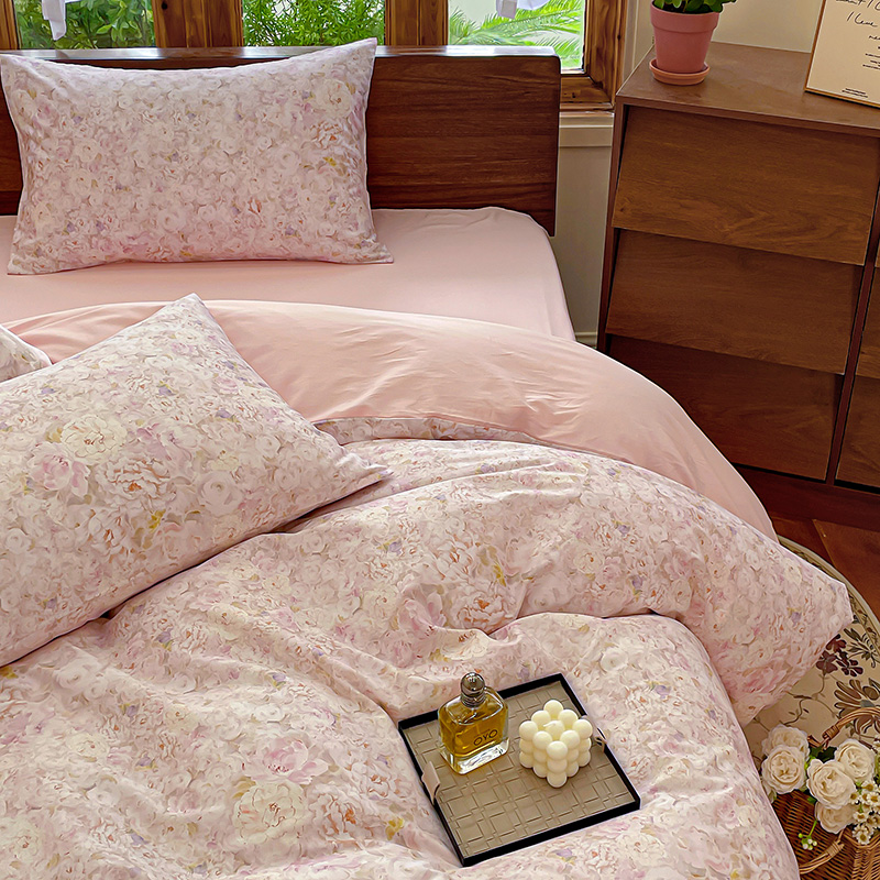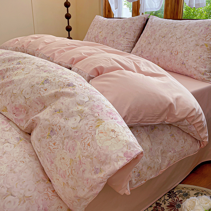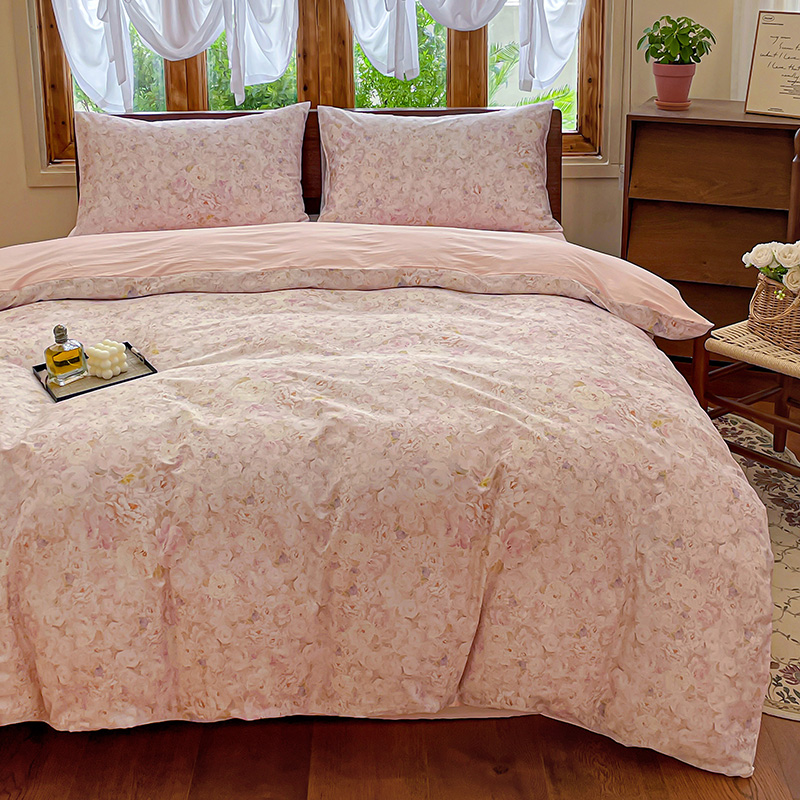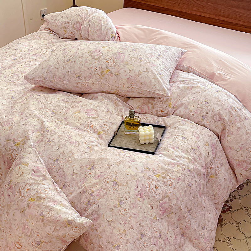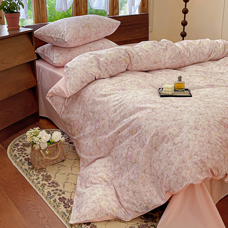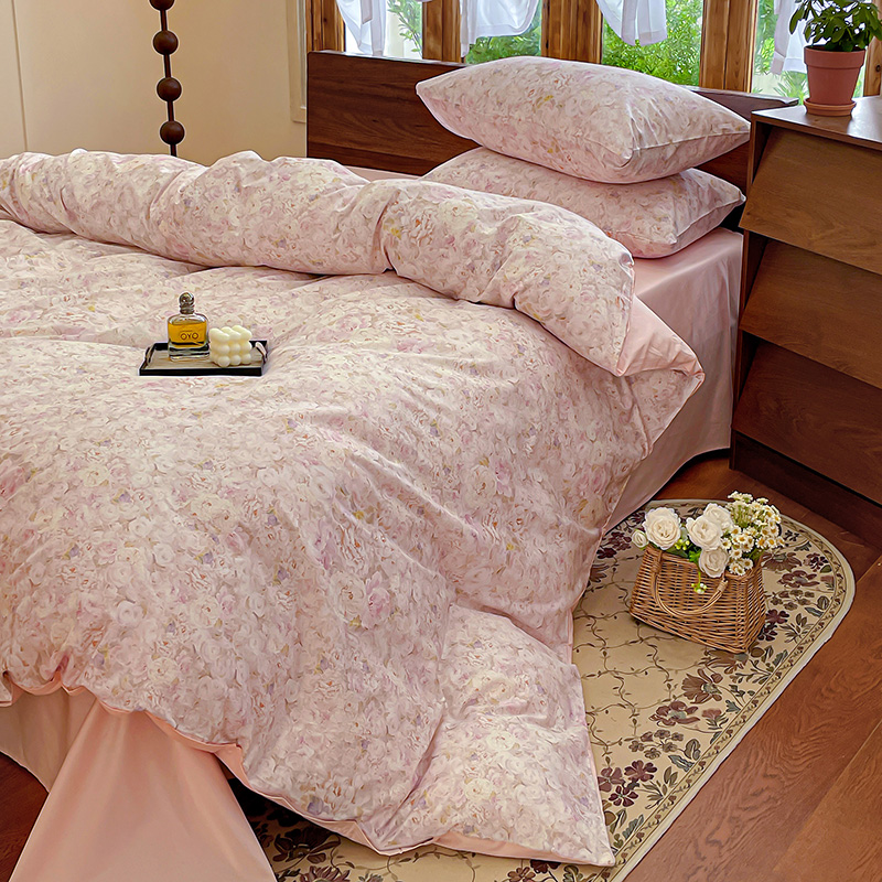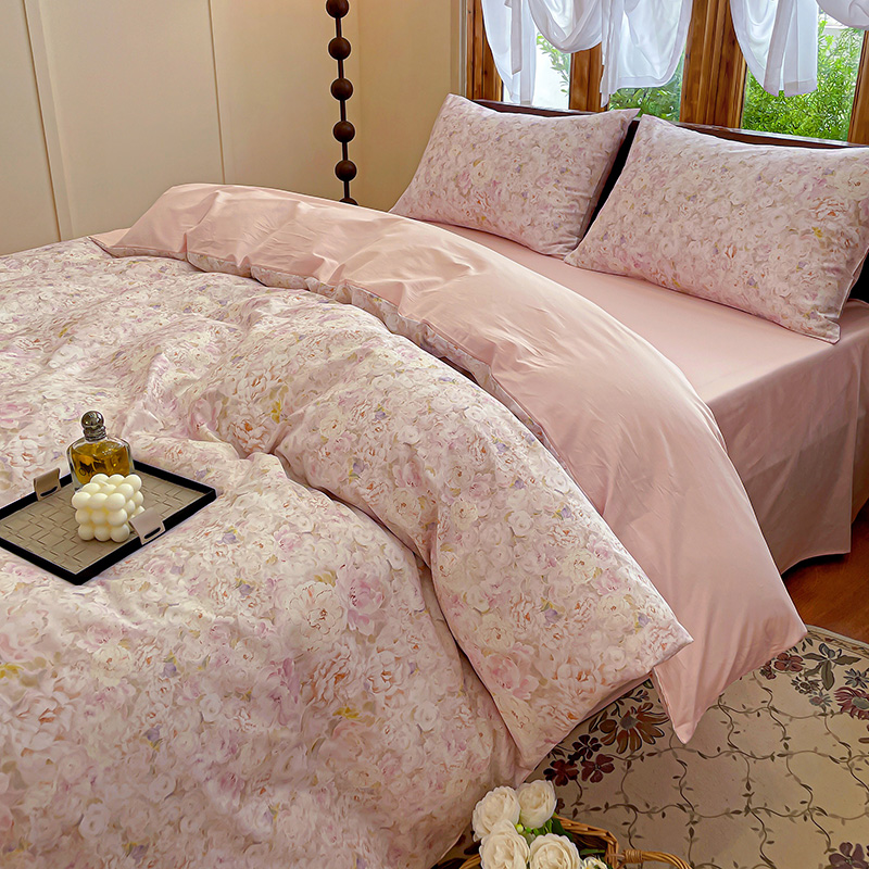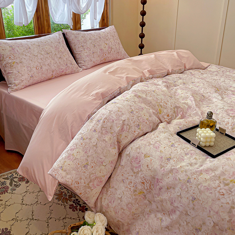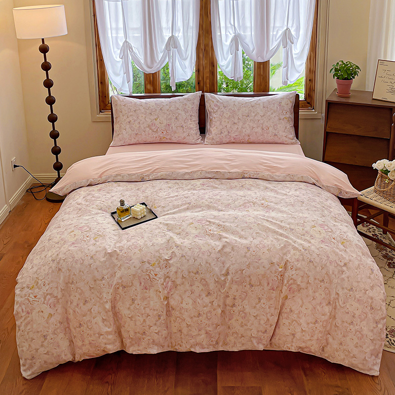 耀悦家纺 2025年60支纯棉印花四件套长绒棉被套床单 花之恋