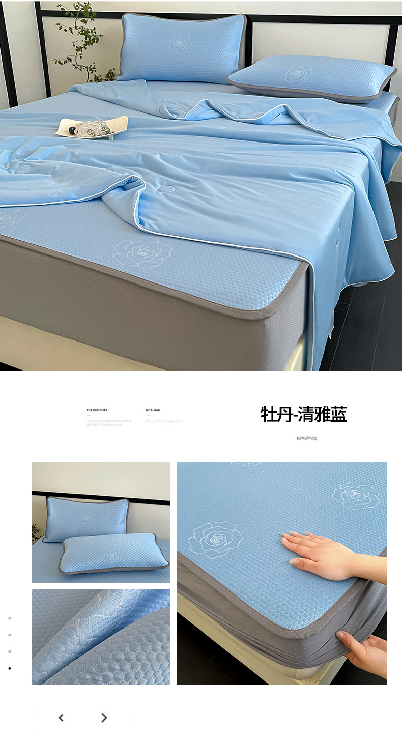 • 91家纺网 家纺一手货源 找家纺 欧邦2025新款提花冰豆豆床笠款夏被四件套-牡丹系列 牡丹-清雅蓝