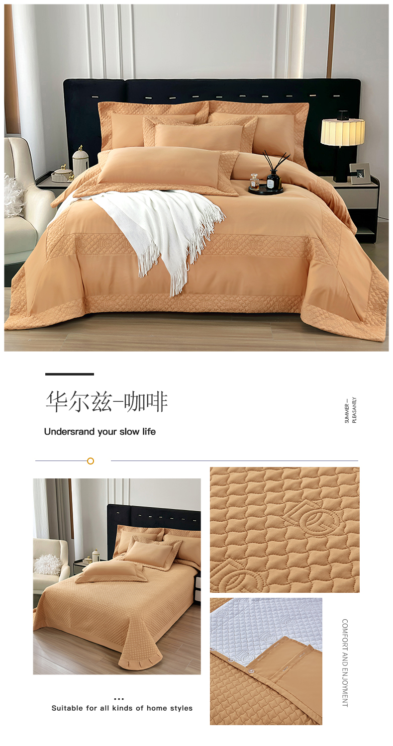 商品名称:OL家纺2025新款轻奢风氧乐棉床盖夹棉防滑四件套 华尔兹-咖啡